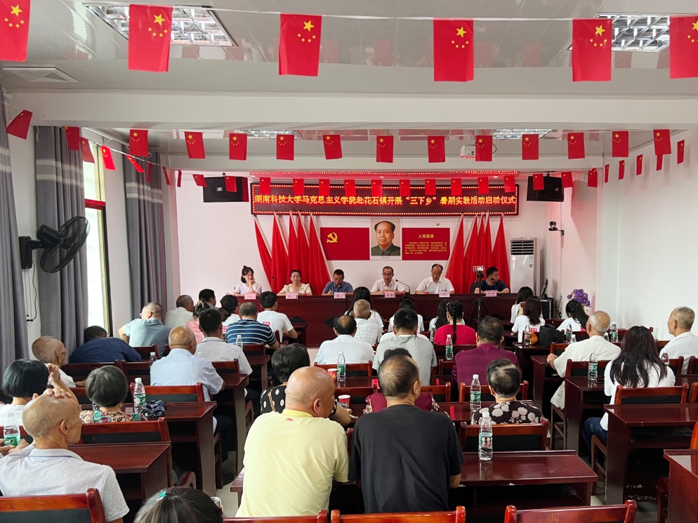 7月8日上午,永利yl23411“薪火湘传”理论宣讲团暑期“三下乡社会实践活动启动仪式在湘潭县花石镇罗汉村党员会议室顺利举行。花石镇党委副书记徐毅、学院党委副书记刘图其、湘潭县驻罗汉村乡村振兴工作队第一书记钟良、湘潭县融媒体中心记者文银凤、湖南兴宏运湘莲视频有限公司负责人康兰、罗汉村村总支部书记胡雄标以及罗汉村的党员、预备党员、入党积极分子共同出席了本次活动。