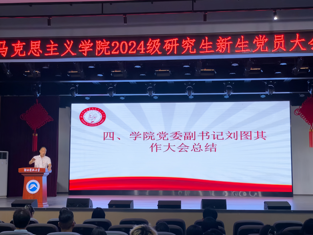 为进一步加强党组织建设,做好新生党员入学教育,更好地促进党员发挥先锋模范带头作用。9月11日,我院2024级研究生新生党员大会在昭潭书院学生活动中心顺利召开。院党委副书记刘图其、兼职组织员吴旋、各研究生党支部副书记、学生党建办成员、以及2024级研究生新生党员与会。会议由学生党建办公室主任范奕主持。
