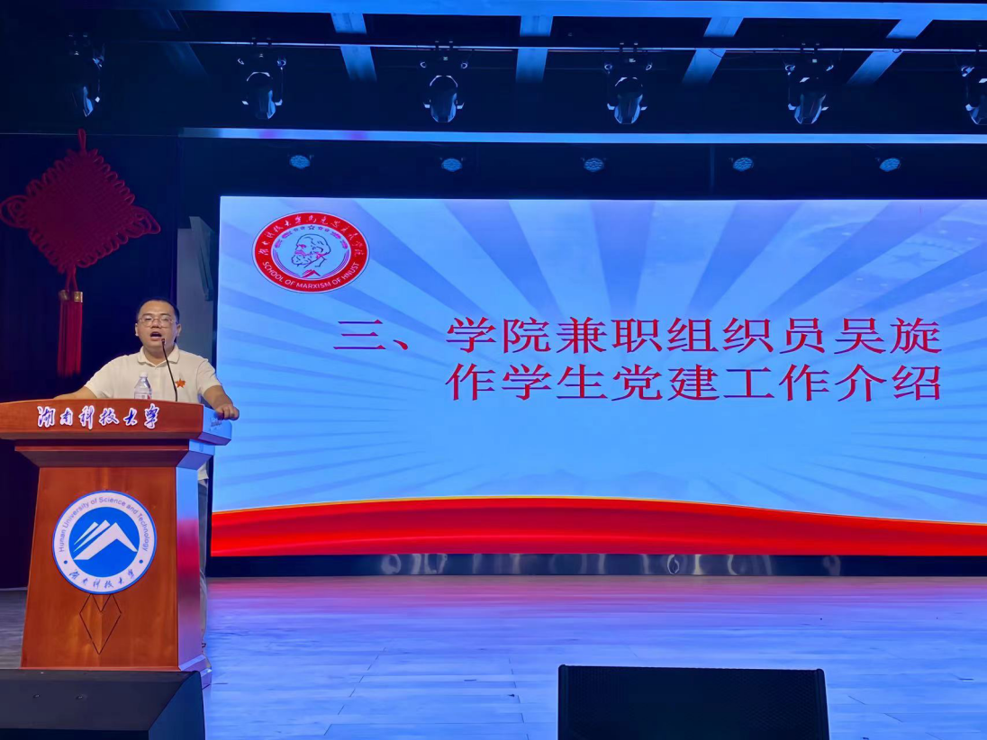 随后,吴旋从学生党建办基本构成、学院支部建设情况、学生党建办与各学生党支部的关系等方面向全体新生党员详细介绍学院学生党建工作情况。并向新生党员强调“三会一课”和主题党日活动的重要性和规范性。
