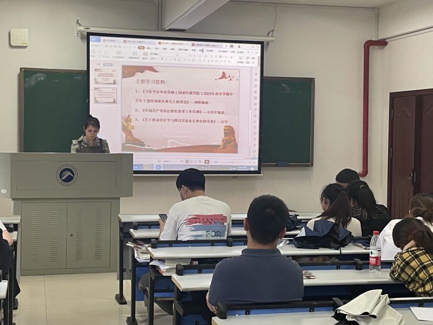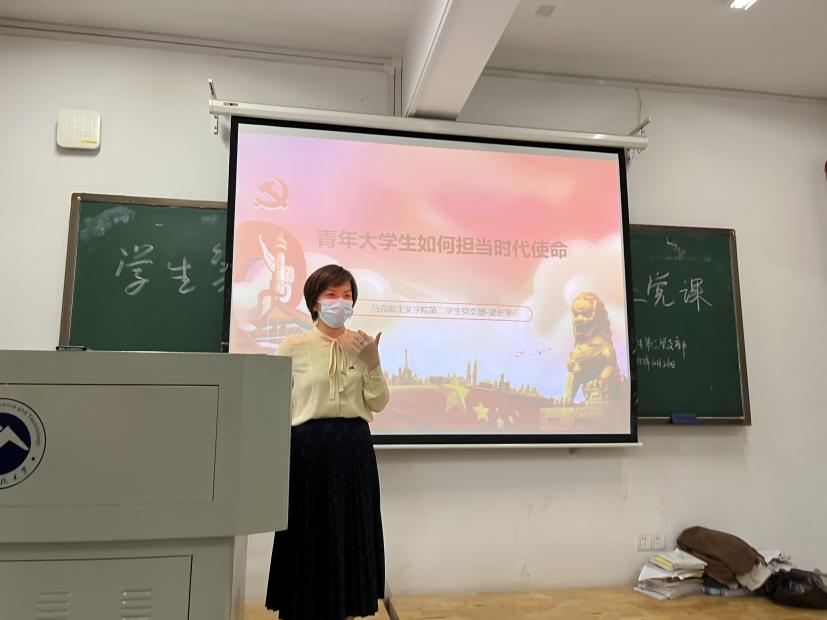 第二支部书记梁长平结合习近平总书记4月25日在中国人民大学考察调研的讲话,进行了题为“青年大学生如何担当时代使命”的党课学习。梁长平书记指出,中国青年要坚定不移听党话、跟党走,青年党员同志更要不改初心,大力弘扬新时代共产党员奉献精神,积极投身于新一轮的疫情防控志愿工作中去。