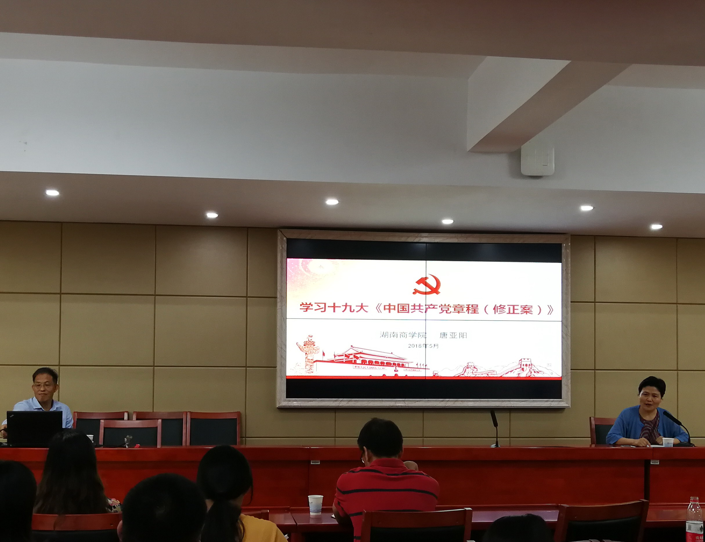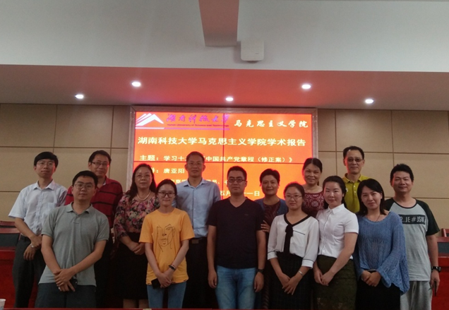 2018年5月21日晚上,湖南商学院党委委员、书记唐亚阳教授应邀在我院立言楼A5-1报告厅作“学习十九大《中国共产党章程(修正案)》”的学术报告。学院全体师生出席讲座,此次讲座由副校长李琳主持。