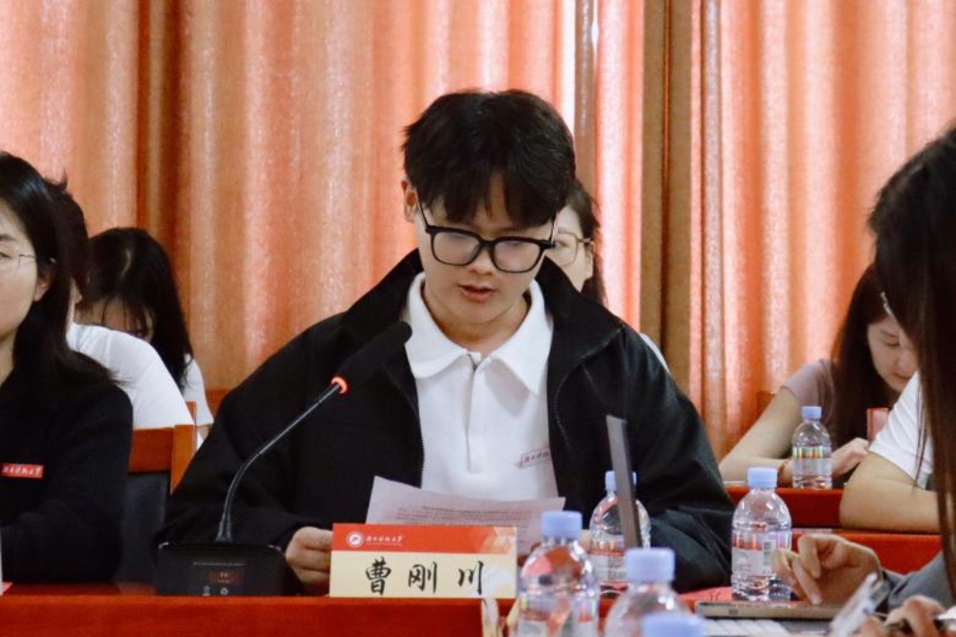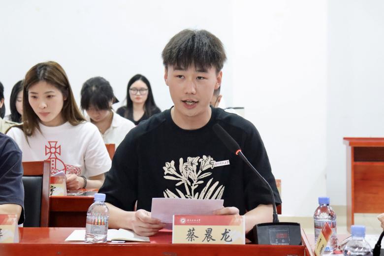 ▲图为湖南科技大学校校研究会团委副书记蔡晨龙发言