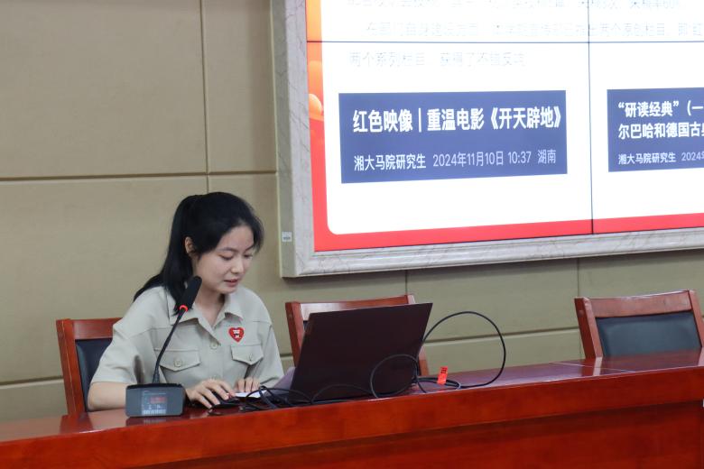 ▲图为湘潭大学永利yl23411研究生会主席葛晓玥工作分享