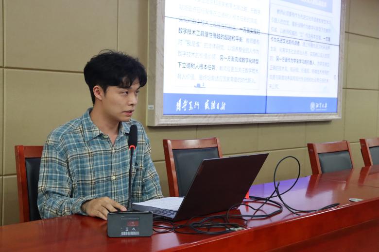 学术交流环节以“人工智能与大学生思想政治教育”为主题,设置了技术赋能、宏观话语、思政课教师、思政课教学四大分论坛。中南林业科技大学苏思源、湖南科技大学魏苏倩等同学分别就大模型在教育领域的应用、数智技术赋能思政话语传播等议题进行了精彩的汇报。随后,围绕生成式人工智能在思想政治教育应用中的风险防范、话语体系创新等主题,中南林业科技大学彭瑞琦、湘潭大学蒋佳欣等同学也展开了深入的探讨。在思政课教师与思政课教学主题汇报中,同学们就思政课教师的角色重塑与能力重构、思政课教学革新等议题进行了分享。湖南科技大学副教授周建华、许浩对学术分享进行了逐一点评,强调AI技术应用需坚守育人初心,实现技术理性与价值理性的有机统一,同时学术研究需立足教育本质,警惕技术异化风险。