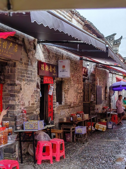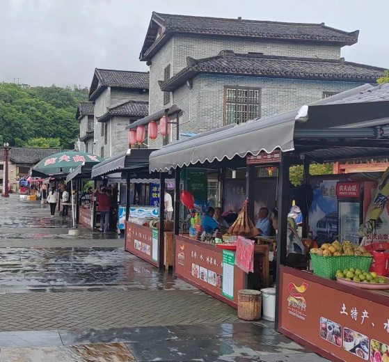 7月31日上午,团队走进乡村振兴青年创业示范点——“瑶香韵味”特产店。店主朱春华热情地向成员们介绍当地的特产,如奈李、姜糖、七彩泡椒等。在她的朋友圈中,大部分都是“打包中”的视频和鲜甜的果子的图片。在沙洲村,百姓们在家门口就可以开店、摆摊,每个人都可以做自己的老板。
