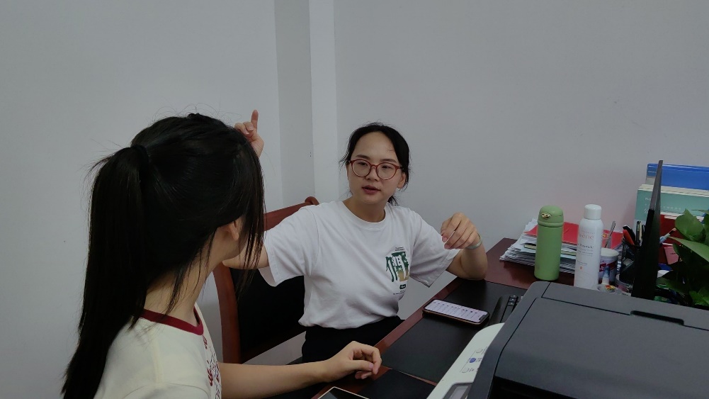 8月1日上午,团队成员们与沙洲村驻村第一书记、乡村振兴工作队队长谭诗华深入交谈。沙洲前两年宣传片的更迭里,谭书记耐心细致的答疑解惑中,成员们更详细地了解了新时代沙洲村“半条被子传承革命薪火,红色旅游助力乡村振兴”的实践路径、发展状况与未来愿景。“沙洲有三色——红色旅游、绿色产业和古色乡风。”谭书记说道,“沙洲村未来的发展路线定位为‘12345’,我们致力于把沙洲村打造成全国乡村振兴示范村、全国共同富裕样板村和中国式现代化新农村。”