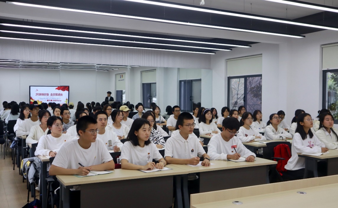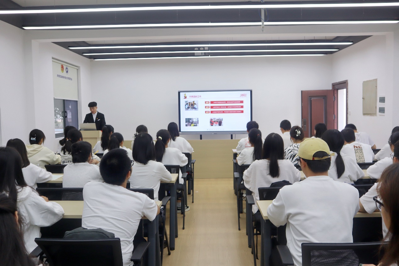 活动现场,40余名青年团员在本次团课主讲人程锦同学的带领下,通过生动形象的图文影音,深入了解中国共产主义青年团。本次活动从四个部分深入推进,首先从共青团的使命性质和“三个必须”凝聚青年团员广泛共识;其次通过贯穿建党百年历史,以革命先辈与当代青年小将为标杆,以习近平总书记在庆祝中国共产主义青年团成立100周年上的讲话为理论指导,精准解读青年团员应当是有理想、敢担当、能吃苦、肯奋斗的时代新人;再次,立足“两个大局”国内外形势,帮助青年团员找准自我定位,强化责任担当;最后,以不忘初心、牢记使命为引,指出作为能够堪当民族复兴大任的时代新人应以时代背景为契机,坚持党的科学领导、坚持用马克思主义科学理论武装头脑,立身百行,以学为基。