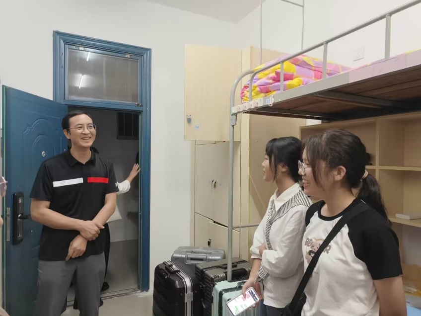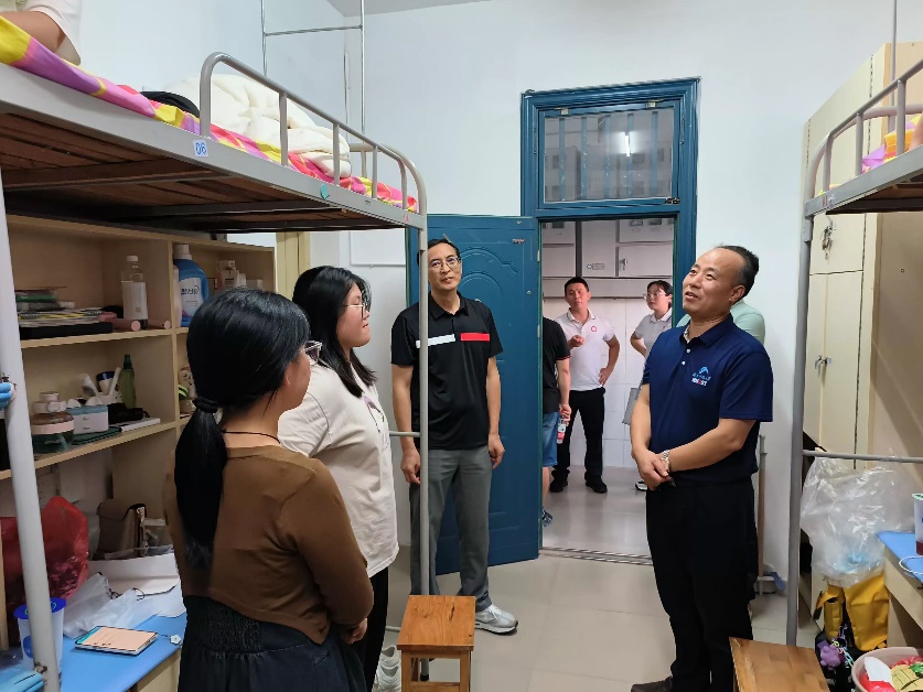 走访期间,唐小芹了解大家的适应情况和各方面的困难,叮嘱大家:好好珍惜这四年彼此同寝相处的时光,多一些包容与理解,共同搭建和谐温馨的寝室氛围大学时期,同时,要像海绵一样汲取知识,提升技能,少玩游戏、珍惜时间,锻炼心性、磨练意志。刘图其嘱咐同学们做好防暑措施,锻炼身体,保持健康体魄,提醒同学们不要使用违规电器,有任何困难都可以联系辅导员,辅导员手机24小时开机。各方向点点长就本方向学习为同学们提供一些学习建议。