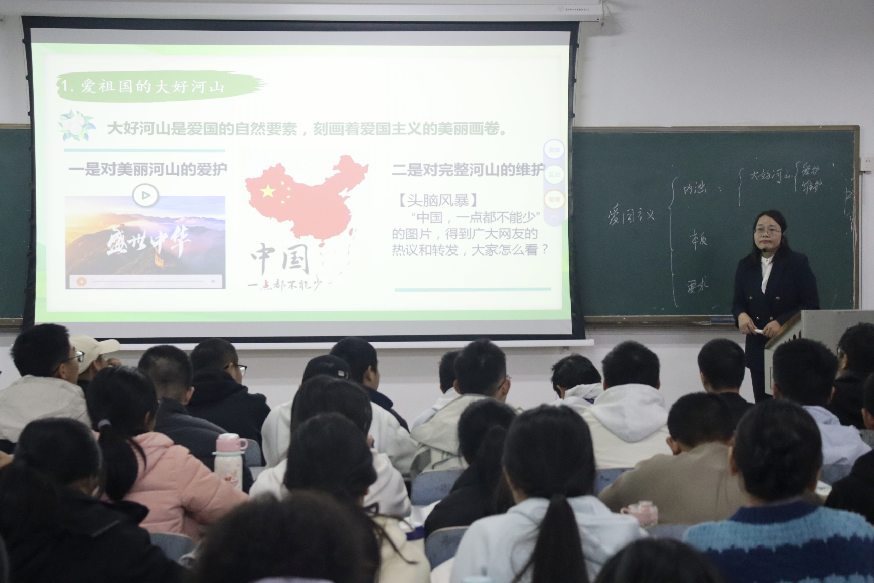 课程进一步从理论、历史与现实三个维度展开,引导学生深入理解新时代爱国主义的本质特征,并围绕“如何将爱党、爱国与爱社会主义相统一”这一命题,探讨了大学生将爱国主义情感转化为实际行动的路径。在此基础上,讲述了新时代爱国主义的三个基本要求:坚持维护祖国统一和民族团结,尊重和传承中华民族优秀传统文化,以及坚持立足中国又面向世界。