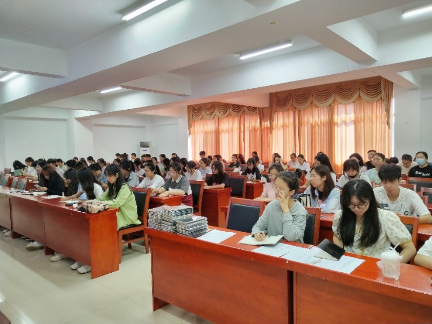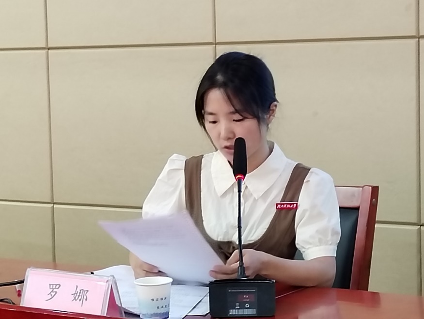 随后,罗娜汇报了本科各班英语四六级通过率以及期末考试情况并带领大家学习了《关于开展湖南科技大学2023-2024学年学生班级目标管理的通知》文件内容。她要求各班要优化班级管理制度,对标对表完成各项指标,并希望各班积极加强班级学风建设,形成良好的班风学风。