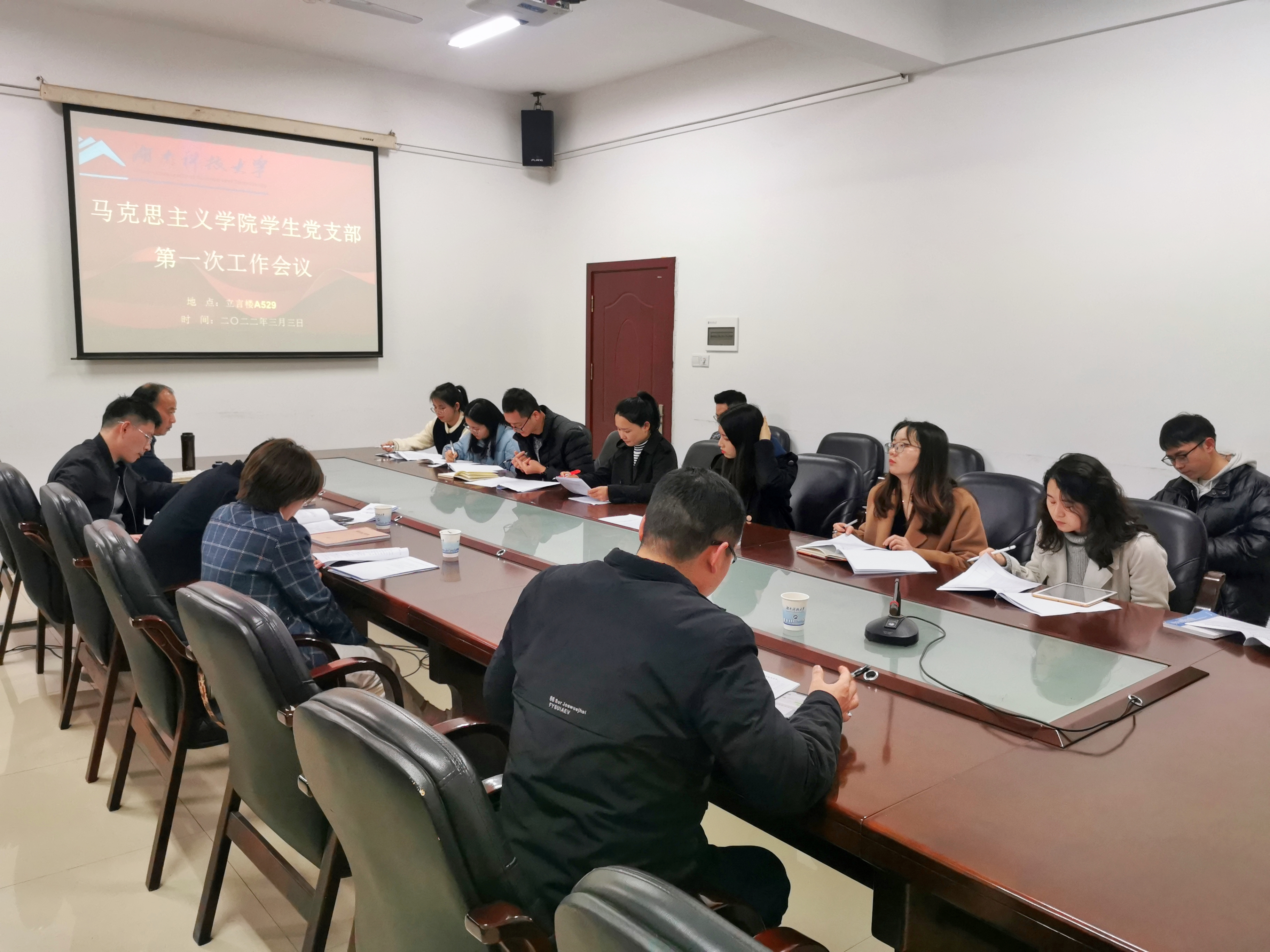 为加强新时代党支部建设,推动马院学生党支部标准化建设向更高水平迈进,我院于2022年3月3日在立言楼A529召开了新学期学生党支部第一次工作会议。梁长平、韩平、刘哲、李文科等老师以及学生党支部全体成员参加了本次会议。会议由院党委副书记刘图其主持。