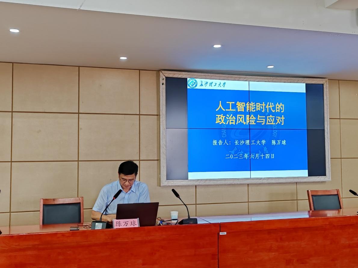 6月14日下午,长沙理工大学陈万球教授应邀为我院师生作题为《人工智能的政治意蕴》的学术讲座,讲座在立言楼A5-1报告厅举行。我院部分教师及21级、22级硕博研究生参加,讲座由颜中军教授主持。