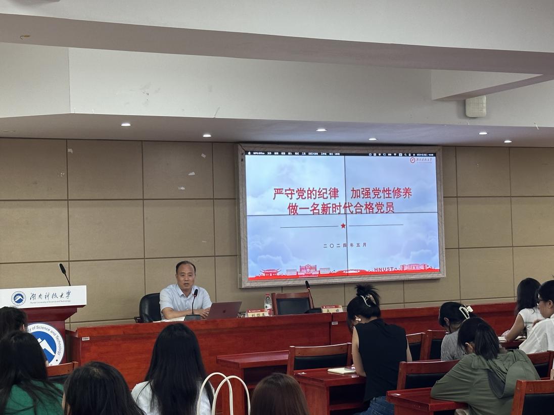 刘图其以《严守党的纪律、加强党性修养,做一名新时代合格党员》为题,从党的纪律建设的经验、新时代党的纪律建设、学纪知纪明纪守纪做一名合格的党员等几个方面向毕业生党员讲授党纪学习教育专题党课。指出,作为一名党员必须要严守党的政治纪律和政治规矩,知敬畏、存戒惧、守底线,坚定理想信念和原则底线,时刻保持清醒的政治头脑和坚定的政治立场,无论何时何地都要发挥好新时代青年党员的模范带头作用。