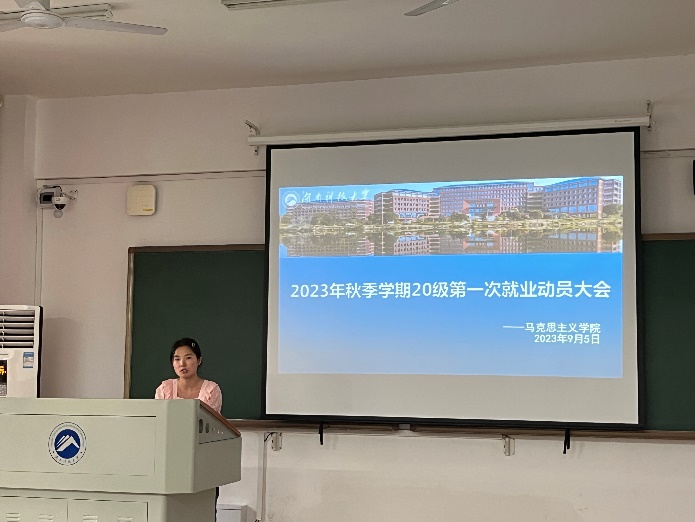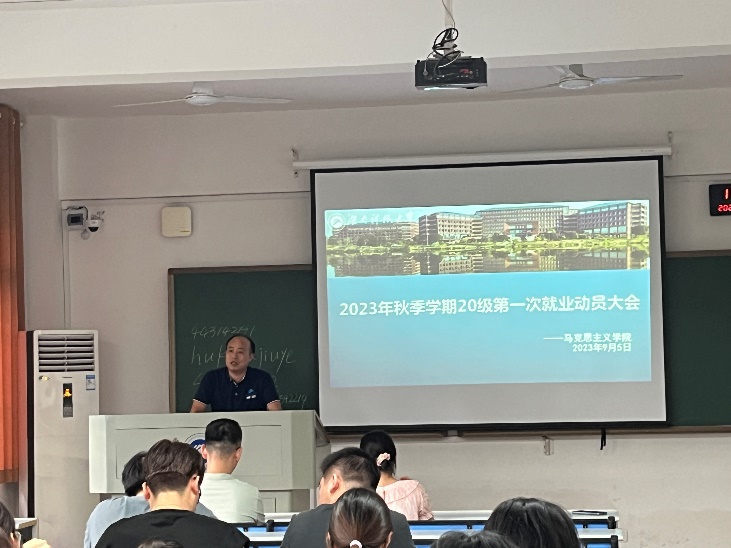 随后,刘哲就我院近几年实际考研情况做出简要阐述,并对2022-2023学年我院学生取得的优异考研成绩表示赞扬。他着重强调本学期秋季招聘会的重要性,呼吁同学们积极参与,把握好就业机会。