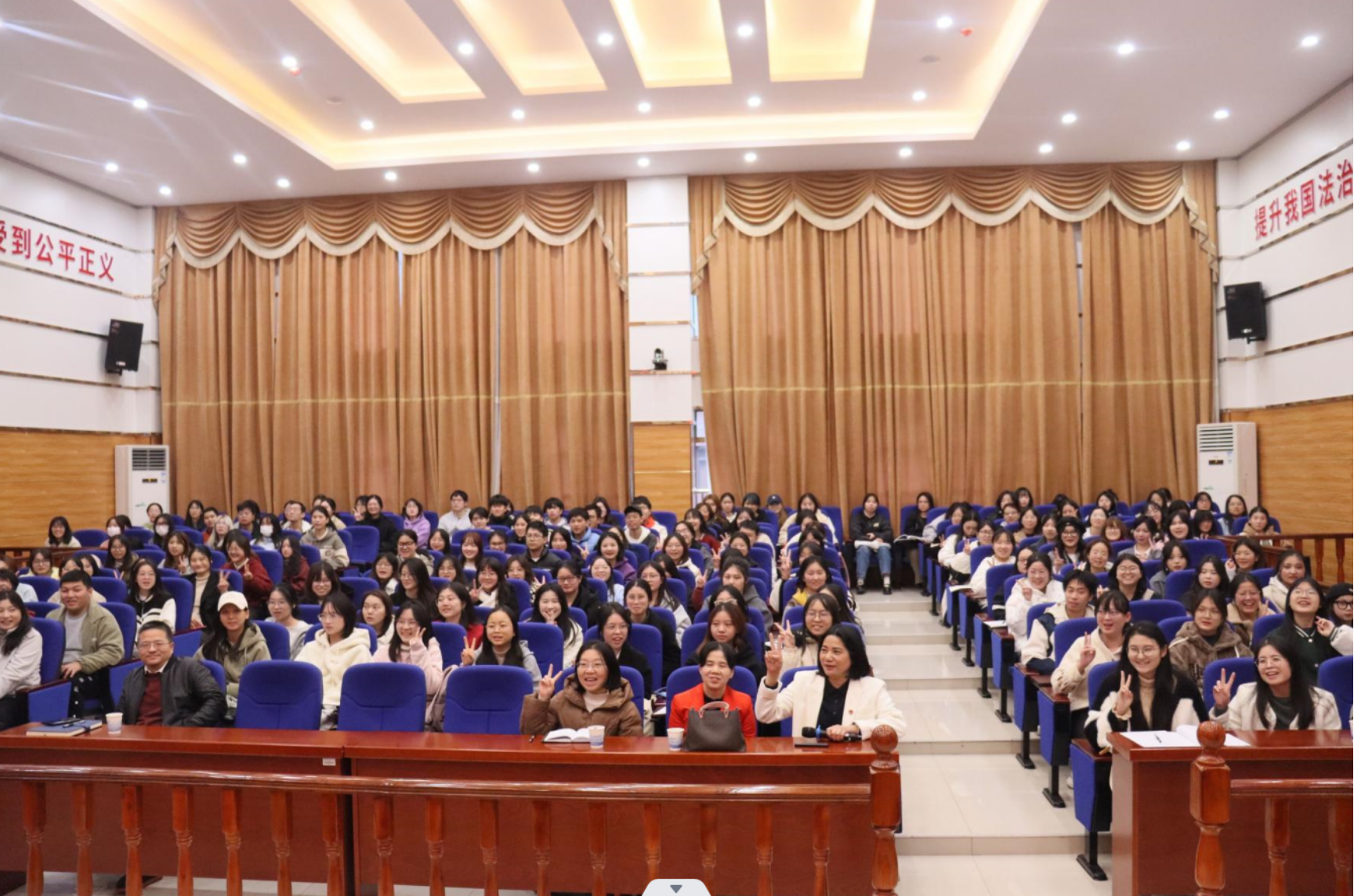 在讲座的互动环节中,21级思想政治教育专业4班的龚琪同学表达了感想与收获。她说,自己是一名公费定向师范生,很早就树立了成为一名好老师的志向,商校长的报告让我深受启发,在接下来的学习中,我要不断地加强阅读与写作,同时树立见识与专业同等重要的意识,努力成为一名合格的人民教师,并要以商校长为榜样,努力成为一名优秀的人民教师。讲座最后,在商南花校长的带领下,同学们一起诵读“做学生喜欢的老师,育德才兼备的学生,书写美的教育故事”,这三句话,既是商校长讲座的总结,也是大家听完讲座后的共鸣,使讲座气氛达到了高潮。