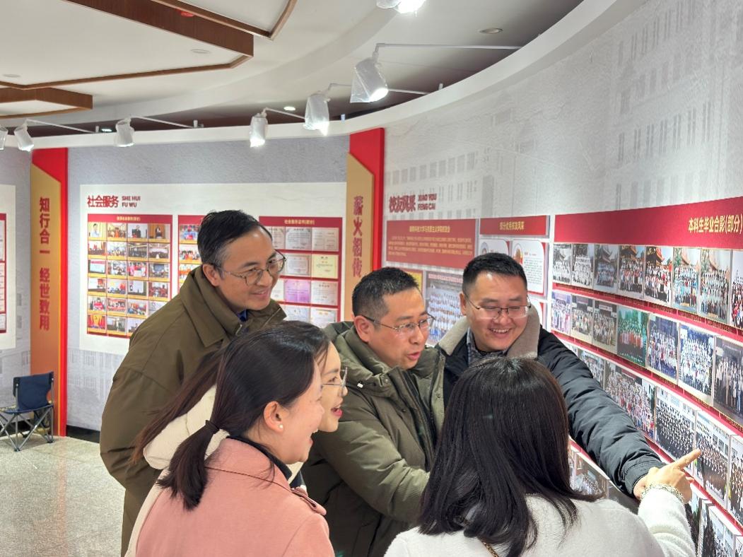 随后,在唐小芹的陪同下,苏正昌一行参观了我院的院史馆、多功能VR(虚拟仿真)思政实践教学中心和学科展室,通过实地参观和亲身体验,他们深刻感受到了我院在学科建设、教学科研和校园文化建设等方面取得的显著成就。