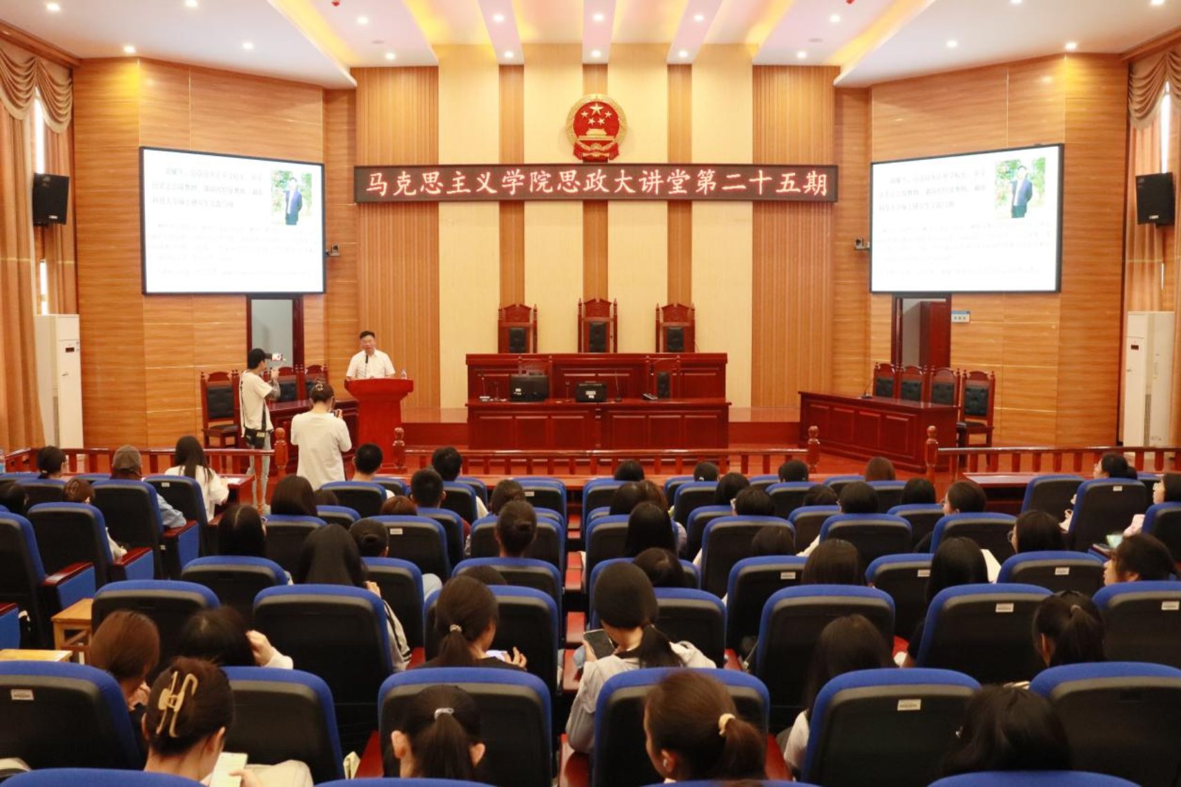 6月3日下午,我院“思政大讲堂”第25期在立言楼模拟法庭3-2精彩开讲。本期讲堂同时也是我校“科技与人文大讲堂”第53讲。本期讲堂由湖南省特级教师、宜章县养正中学校长、我院硕士研究生导师胡耀平主讲,我院教师唐佳海副教授主持,学院2022级和2023级思想政治教育专业本科生聆听了讲座。