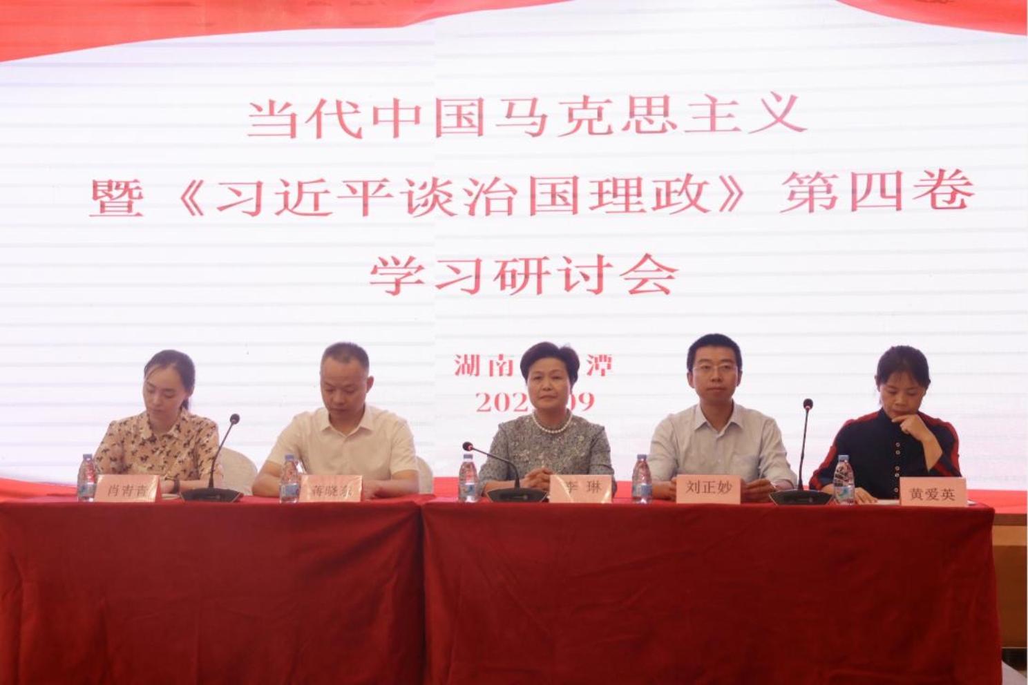 9月23—25日,当代中国马克思主义暨《习近平谈治国理政》第四卷学习研讨会采取线上线下相结合的方式在湖南科技大学成功举行。本次研讨会由永利yl23411、长沙学院永利yl23411、湖南汽车工程职业学院永利yl23411主办,《求索》杂志、《湖南科技大学学报(社会科学版)》协办。中央马克思主义理论研究和建设工程首席专家、享受国务院特殊津贴专家孙熙国教授,教育部“长江学者”特聘教授、享受国务院特殊津贴专家杨凤城教授,教育部“长江学者”特聘教授、享受国务院特殊津贴专家王永贵教授,教育部高校思政课总教指委副主任委员颜晓峰教授,《高等学校文科学术文摘》中心主任、主编何云峰教授等几十名专家学者出席会议。湖南科技大学党委委员、副校长李琳出席开幕式并致辞。开幕式由永利yl23411副院长黄爱英主持。