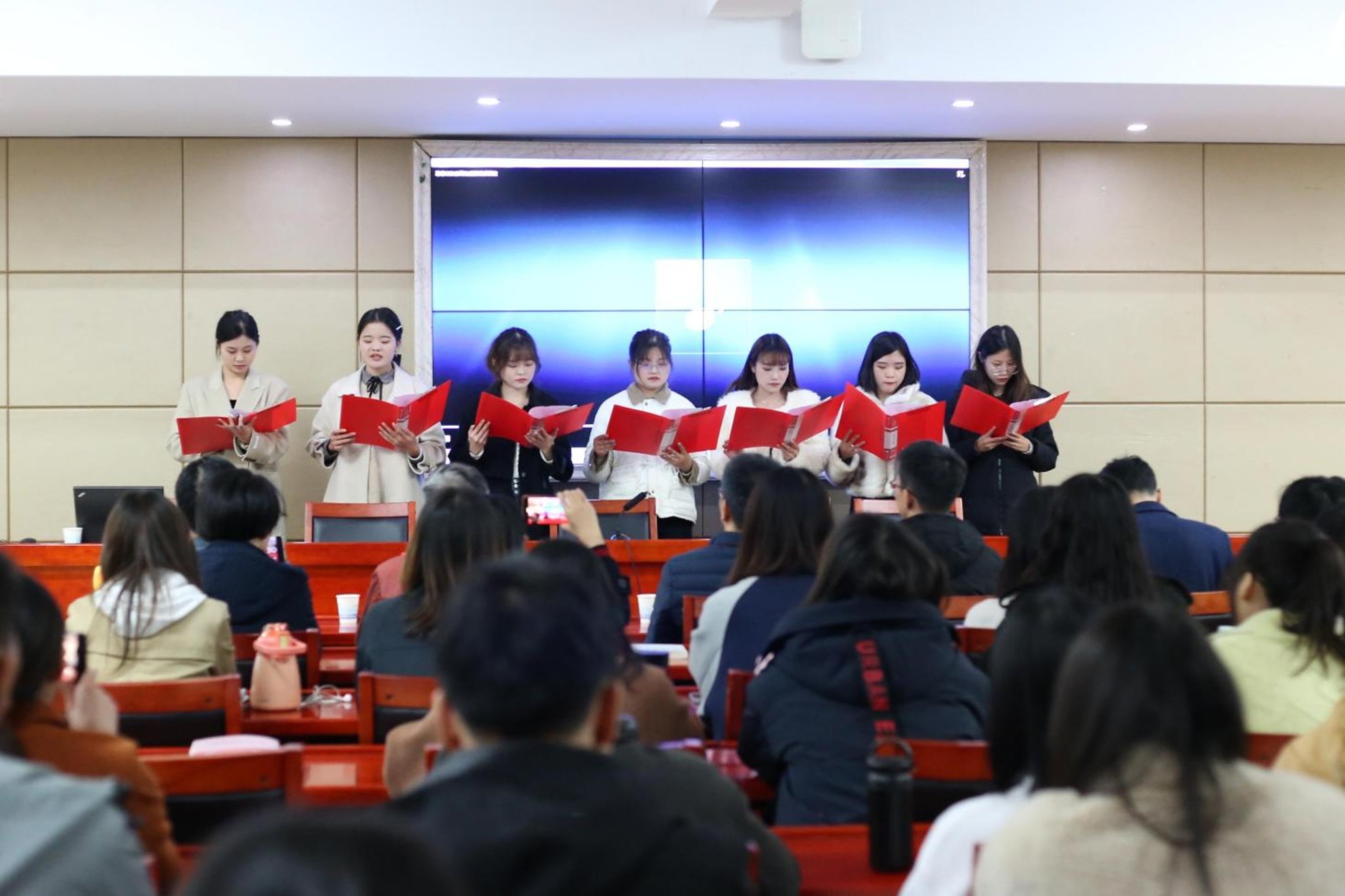 在报告会结束之际,刘正妙书记作了总结发言。他向秦在东教授来学院讲学表达了由衷的感谢,并对此次学术报告作了高度评价。他指出,秦教授通过此次学术报告会对新时代思想政治教育理论发展问题进行了系统性解读、创新性阐述,体现了开阔的学术视野、深厚的理论素养和创新的发展思维,特别是强调永利yl23411研究生要进一步增强思想政治教育的使命意识与能力素养,使在座听众深受启发教育。最后,7位硕士研究生集体朗诵秦在东教授所作学术诗《思想政治教育的起源》,向秦教授和参会师生展示了一场特别的“学习报告会”。