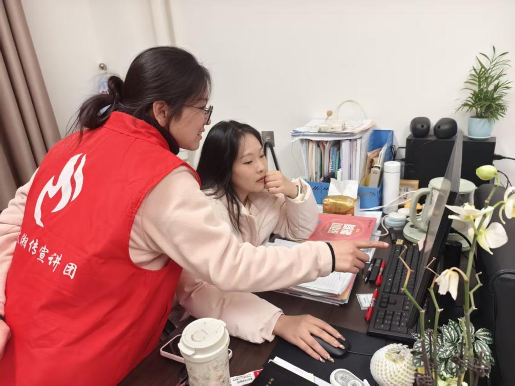 图为宣讲团成员与学生开展学业辅导和交流谈心