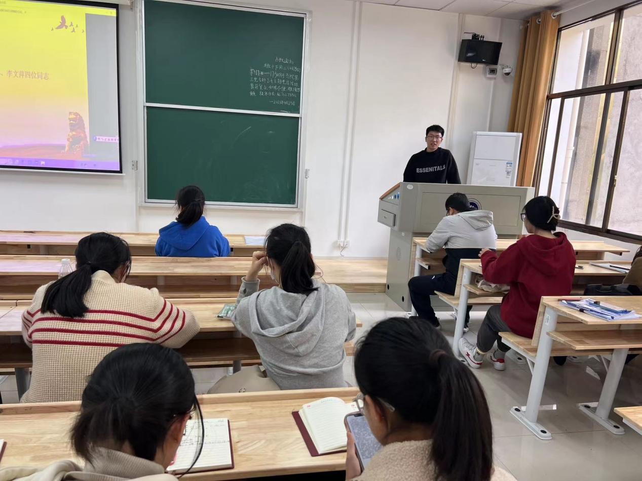 本科生第一党支部书记刘哲同志在会议中强调,广大学生党员要认真学习党章、熟悉掌握党章,把学习党章与学习党的二十大精神结合起来、与学习习近平新时代中国特色社会主义思想结合起来、与学习其他党内法规结合起来,深刻把握党章各项修改的科学内涵和重大意义。