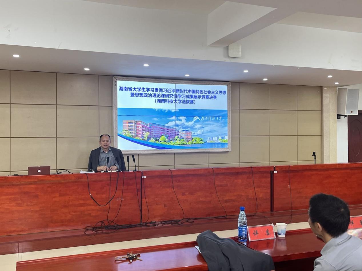 2022年5月24日,我院在立言楼5-1举办湖南省大学生学习贯彻习近平新时代中国特色社会主义思想暨思想政治理论课研究性学习成果展示竞赛决赛的校内选拔赛,从已在省复赛中拟获二等奖的6组学习小组中选拔出1组参加省决赛。选拔赛评委5人,分别是:长沙学院永利yl23411侯旭平教授、湖南科技大学评建中心周险峰主任、法学与公共管理学院王明副院长、教育学院张进良副院长、人文学院李文浩副教授。选拔赛由学院副院长黄爱英主持。