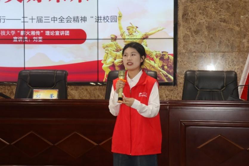 为深入学习贯彻党的二十届三中全会精神,11月1日,我院院长唐小芹、院党委副书记刘图其、辅导员邹昕带领“薪火湘传”理论宣讲团成员前往湘潭县云龙中学开展党的二十届三中全会精神宣讲活动。