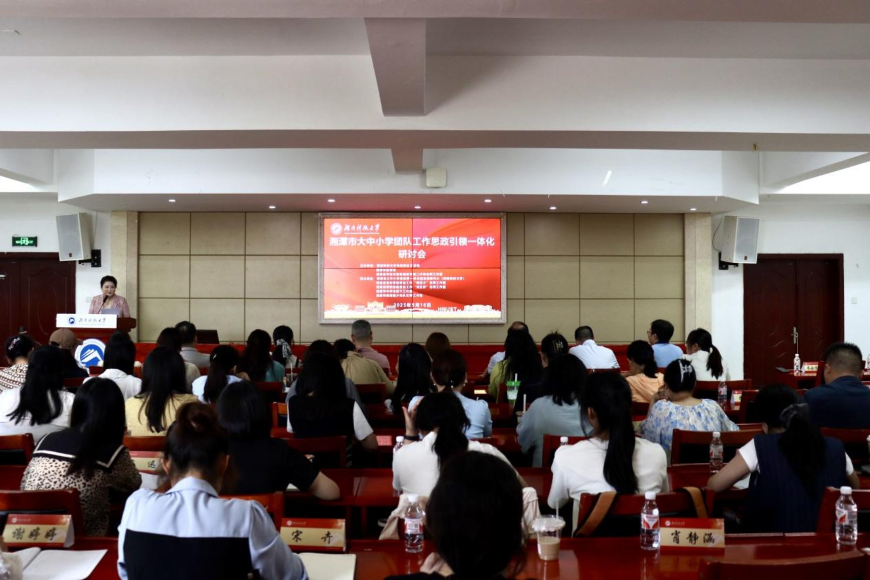 为深入贯彻落实《关于全面加强新时代少先队工作的意见》和《新时代加强和改进共青团思想政治引领工作实施纲要》要求,推动团队工作与思政教育深度融合,5月16日下午,湘潭市大中小学团队工作思政引领一体化研讨活动于湖南科技大学立言楼5-1顺利开展。本次活动由永利yl23411、湘潭市教育局、湖南省学校共青团湘潭市第二中学名师工作室联合主办,湖南省高校思想政治工作“禹旭才”名师工作室、湖南省高校思想政治工作“刘正妙”名师工作室、湘潭市中学名团干工作室、湘潭市“陈思璐”少先队名师工作室承办。湖南科技大学党委组织部陈武副部长莅临活动现场。湘潭市大中小学“党、团、队”思政工作者60余人以及永利yl23411思政专业本科生参加。活动由湘潭市第七中学校长江莉主持。