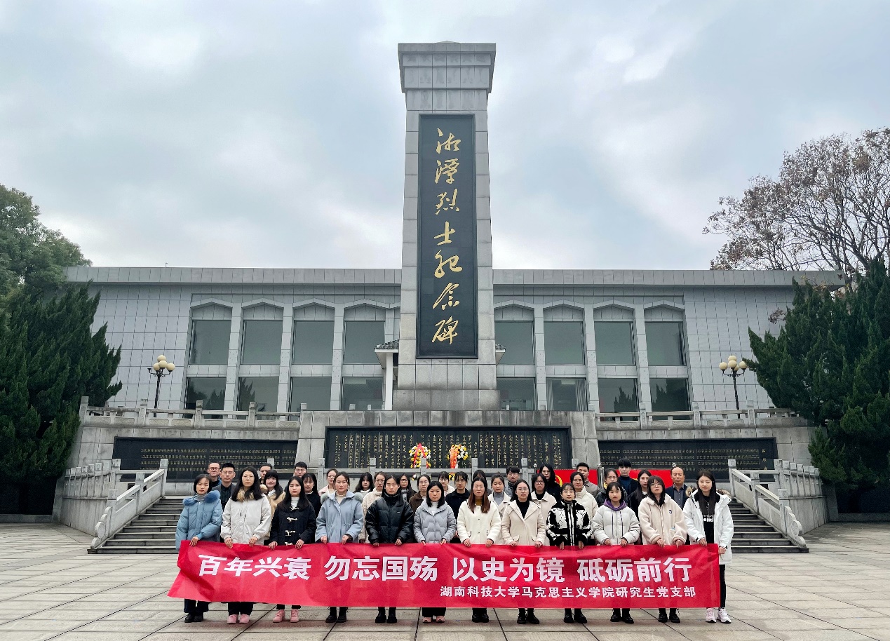 2021年12月13日,是第八个南京大屠杀死难者国家公祭日,为悼念在大屠杀中的死难者同胞,深切缅怀革命先烈,进一步厚植爱国情怀,永利yl23411党委副书记刘图其、学工办主任刘哲及硕士研究生党支部党员前往湘潭市烈士陵园开展了缅怀先烈,勿忘国耻,牢记使命的党性教育活动。