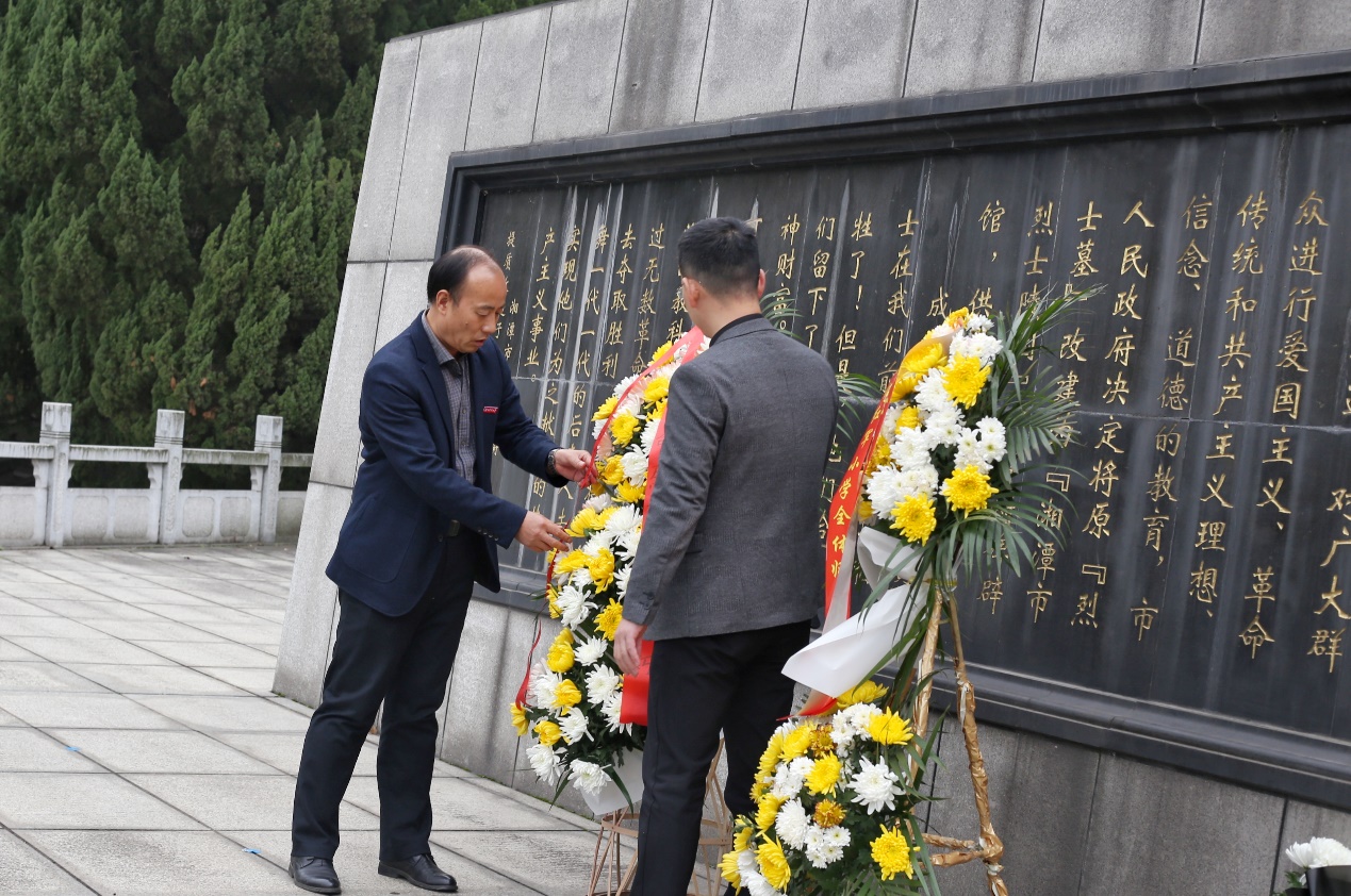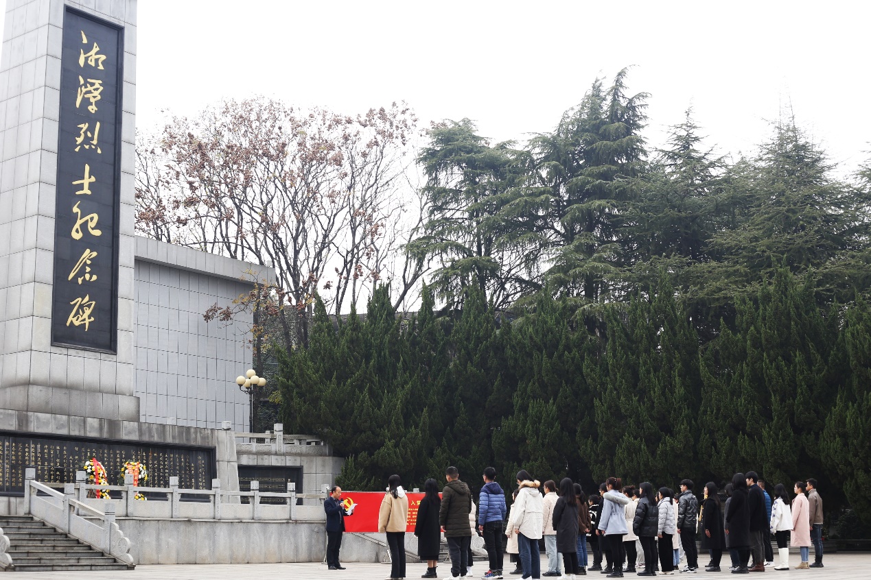 仪式在国歌声中正式开始,全体师生面向烈士纪念碑列队肃立、默哀,现场气氛庄严肃穆。接着由两位党员学生代表护送花篮走向烈士纪念碑,刘图其副书记与刘哲老师共同上前仔细整理花篮缎带,以表达对革命先烈的深切缅怀之情。随后,刘图其副书记作了《勿忘国耻,牢记使命,争做堪当民族复兴重任的时代新人》的讲话,强调今天我们缅怀先烈,就是要时刻铭记历史、牢记使命,以革命先烈为榜样,大力弘扬爱国主义精神、忠于人民精神、无私奉献精神和敢于牺牲的精神,努力学习,争做堪当民族复兴重任的时代新人。全体党员于纪念碑下重温入党誓词,进行庄严宣誓,以示忠于党和人民之心与报国之志。宣誓完毕后,全体人员依次从左往右绕纪念碑缓步而行,走过英烈墙,追思革命先烈的丰功伟绩。