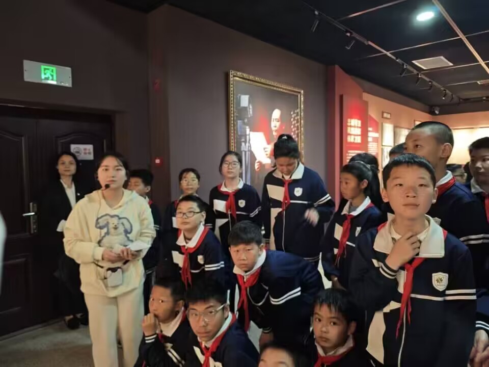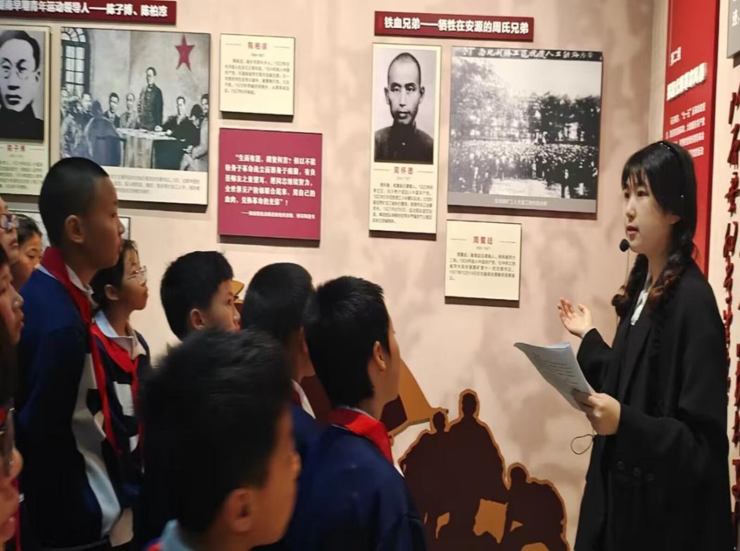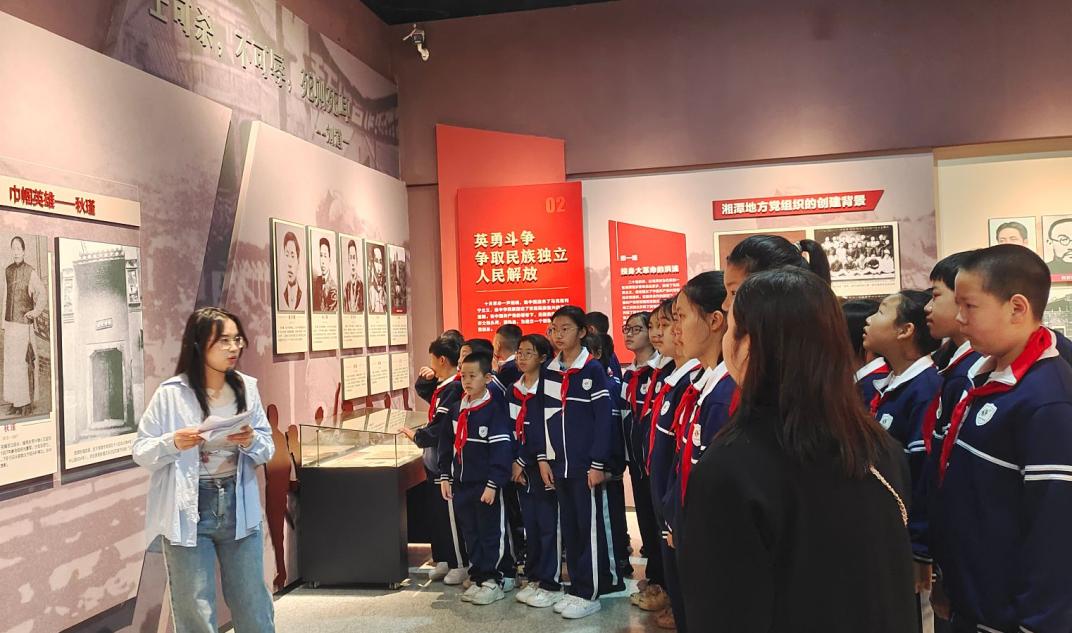 仪式结束后,全体人员有序移步湘潭烈士陵园陈列馆进行参观。我院“薪火湘传”宣讲团成员担任本次活动的讲解员,向参观者讲解湘潭烈士的英勇事迹。李冰倩向参观者讲解了发生在湘潭“三大革命历史事件”之一的衡宝战役;李碧涵向参观者介绍了党的年轻领袖罗亦农烈士的生平以及英勇事迹;蒋玉玺向同学们介绍了巾帼英雄秋瑾在湘潭的生活经历;师雪阳向大家介绍了牺牲在安源的周氏铁血兄弟—周怀德以及二弟周翼廷为中国工人运动做出巨大贡献。