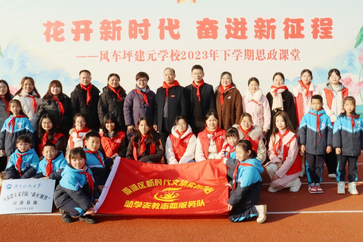 我院“薪火湘传”宣讲团通过与风车坪建元学校深化合作关系,为同学们追寻红色文化、感悟红色精神、厚植家国情怀、争做时代新人搭建崭新平台,同时激励同学们在新时代里砥砺前行,踔厉奋发,争做中国特色社会主义的合格建设者和可靠接班人,用实际行动为伟大中国梦添砖加瓦。