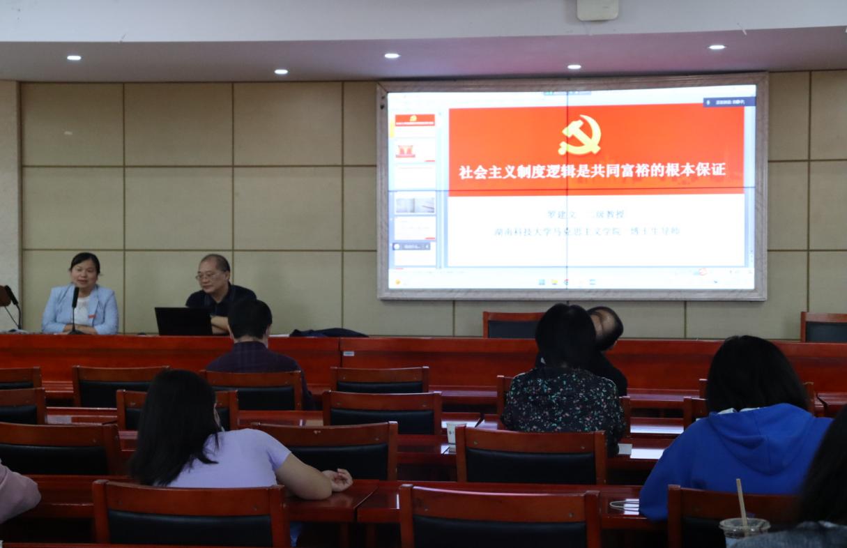 本次活动由马克思主义基本原理教研部承办,原理教研部主任彭曼丽副教授主持,我院多位教师及20级部分学生代表共40余人参加了本次讲座。由于疫情原因,本次活动采取线上线下同时进行的方式,未能到现场聆听的20级其他学生,以及学院教师和部分社会人士,共100余人以线上方式在线参与了本次“思政大讲堂”。讲座反响热烈,不但现场学生积极提问,而且线上听众也给罗教授发来了微信长文,就有关问题进行了深入讨论。线上、线下参与讲座的学生都表示受益匪浅,加深了他们对共同富裕的理解和认识,以后将明确目标,致力实践,不负社会主义新时代的要求和期望。