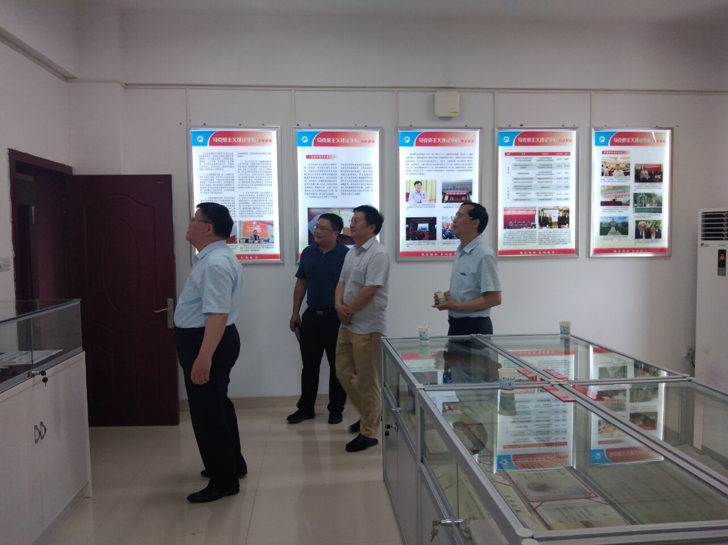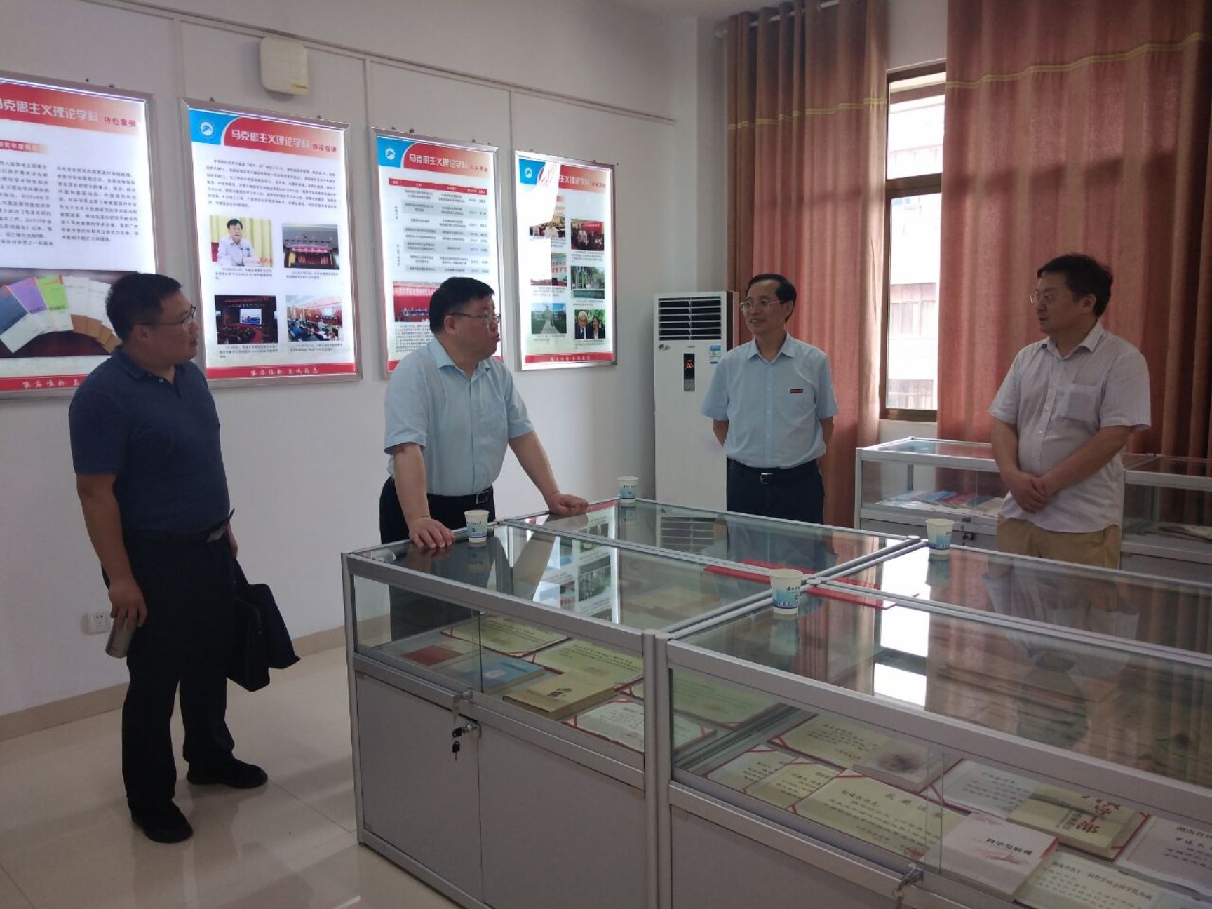 2021年6月8日下午,湖南省总工会党组书记、副主席徐文龙一行在我校校长朱川曲教授的陪同下,来到我院调研,了解学院教师关于工人运动史研究情况,考察了我校马克思主义理论学科建设成果展室。学院吴怀友院长向徐文龙副主席简要汇报了学科特色、队伍结构、科学研究、思政课教学改革、人才培养等方面情况。徐文龙指出,学院拥有良好的师资队伍和办公条件,科研力量强,在工人运动研究方面大有可为。他强调,湖南科技大学是建在毛主席家乡的大学,要注重毛泽东工人运动理论与实践研究,打造毛泽东与湖南工人运动研究特色和高峰。湖南省总工会以习近平总书记关于工会工作重要系列讲话精神为遵循,加强与湖南科技大学合作,成立湖南省工人运动史研究基地,进一步推动湖南工会工作的理论与实践创新。