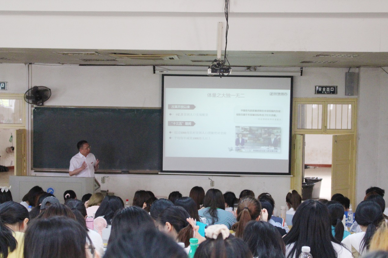 刘友金提到,2021是中国共产党建党100周年,这一百年来,中国脱贫攻坚工作取得巨大胜利,真正实现了“两不愁”“三保障”,为全面建成小康社会、实现第一个百年奋斗目标奠定了基础,为推进实施乡村振兴战略提供了有力支撑,为全球减贫事业贡献了中国智慧和中国方案。值得一提的是,刘友金不仅阐述了中国经济发展的现状及影响,更将自身实际经历和感悟融入其中,加深了同学们对中国改革发展的理解。之后,刘友金着重谈到,中国如今的成就离不开中国共产党的正确领导,中国共产党是中国人民最可靠的主心骨,是中华民族复兴征程上最坚强的领导核心,党中央的判断力、决策力、行动力在发展全局中具有决定性作用。
