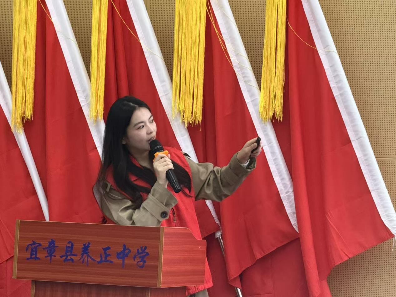 本次宣讲活动由养正中学副校长张超辉主持,洪影、郝海燕、何铃三位宣讲团成员展开宣讲。洪影以“贺龙曲折的入党之路”的故事,给学生展示贺龙对党的忠诚和对信仰执着追求;郝海燕以黄公略的革命一生和“大义灭亲”的故事,指引学生不忘来时路,走好脚下路;何铃以毛主席和习近平总书记的读书故事,鼓励同学们多读书、读好书。