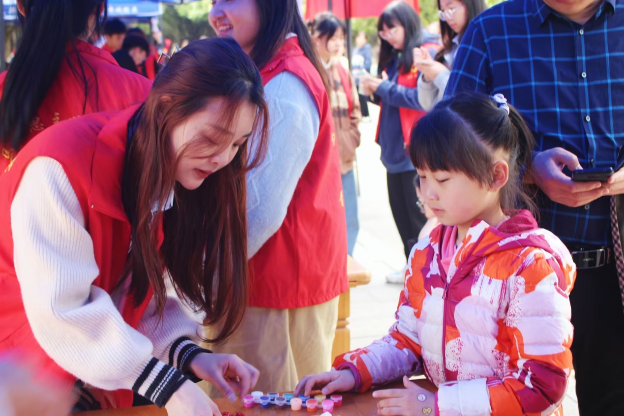 在活动正式开始之前,我院青年志愿者分会向志愿者公开具体分工细则,并将志愿者分成志愿解说组、知识竞答组、文创产品组、心愿树洞组和后勤组。在活动中,志愿者们分工合作,齐心协力,为办好本次活动贡献自己的力量。无论是匆匆路过的本校学子,还是慕名前来赏樱的游客,志愿者们都耐心、细致地为他们提供服务,向他们介绍樱花相关的知识、或手把手教小朋友制作扭扭棒花朵、或带领游客们游览学校的风景区等等。活动最后,所有志愿者一起整理好摆点摊位的材料,将现场恢复原状。