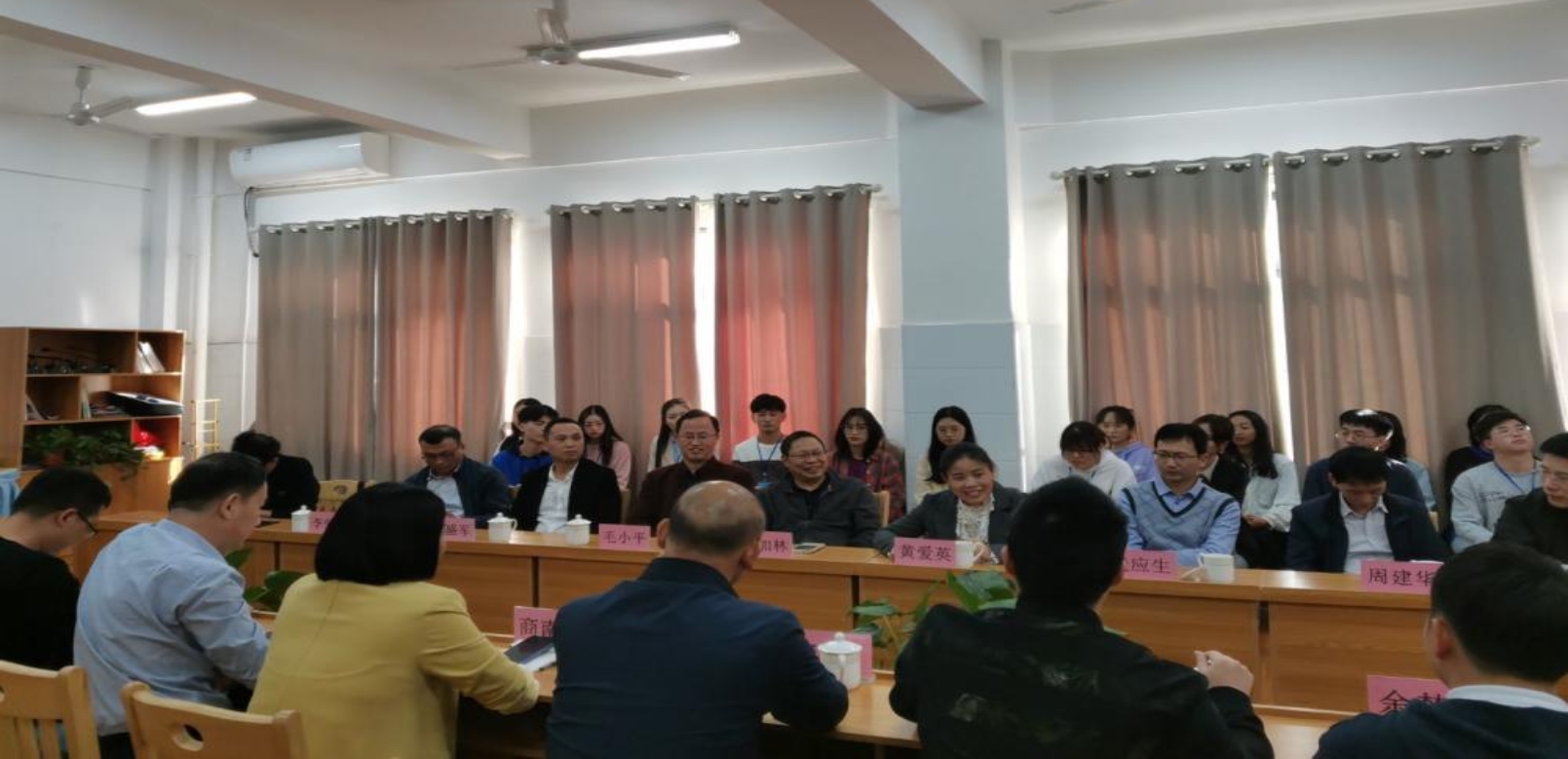 下午三点,签约仪式在综合楼三楼的生涯规划室如期举行。我院各位领导同新翰高中校长商南花、副校长潘明、各部门负责人、学科指导教师代表、班主任导师代表以及20名实习生参加了本次会议。
