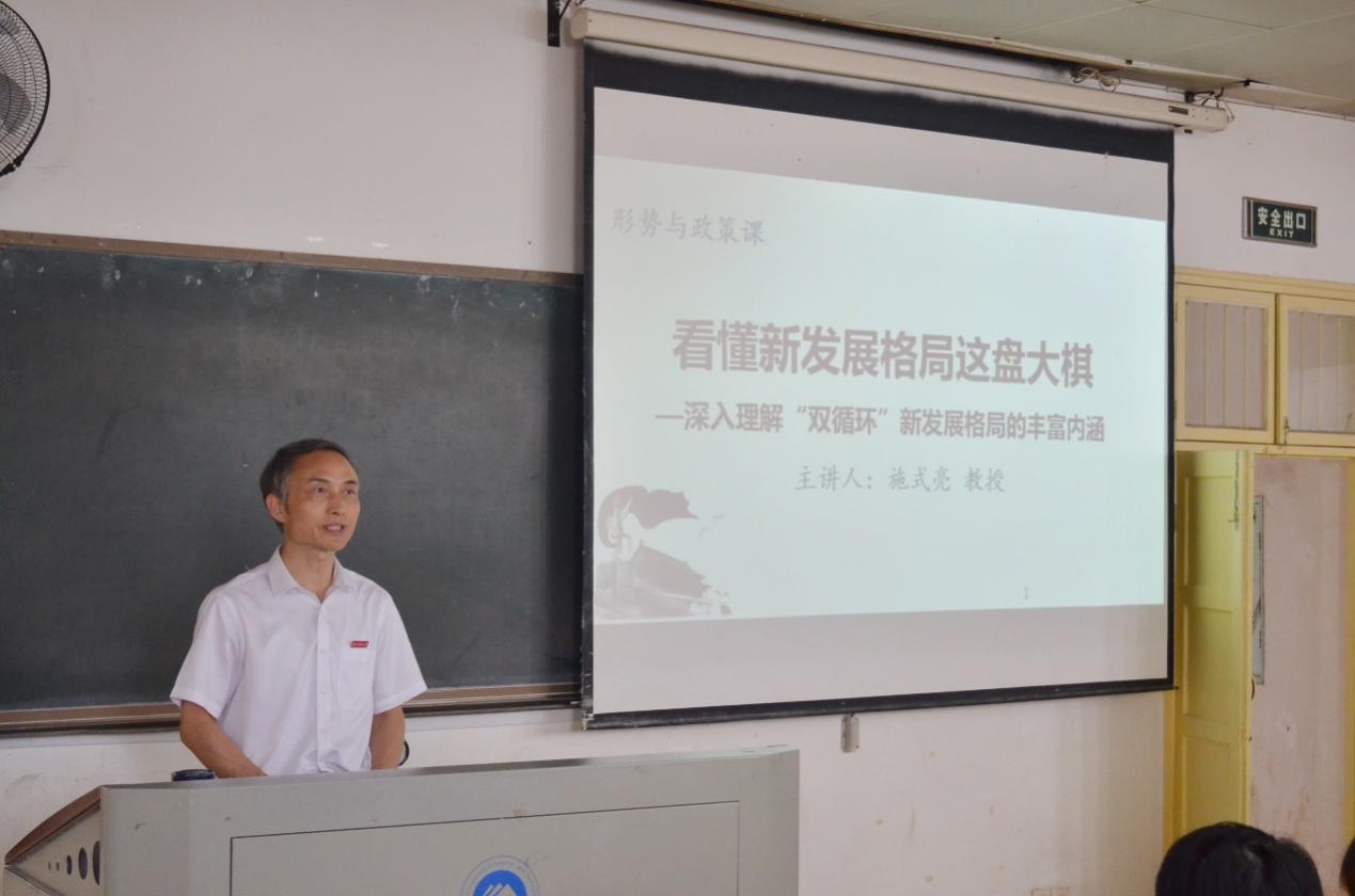 施式亮深入浅出的解读双循环新发展格局的内涵,让同学们深刻理解了新发展格局构建中的中国智慧。课堂上,同学们听课认真,参与积极。课后,同学们纷纷表示受益匪浅。