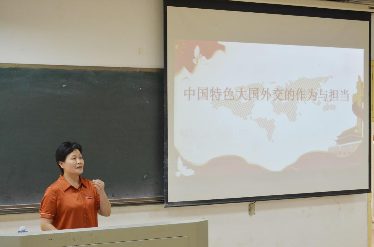 6月28日五六节课,副校长李琳于十教东附楼301教室给18级文学专业的学生上了一堂关于中国特色大国外交的作为与担当的“形势与政策”专题思政课。
