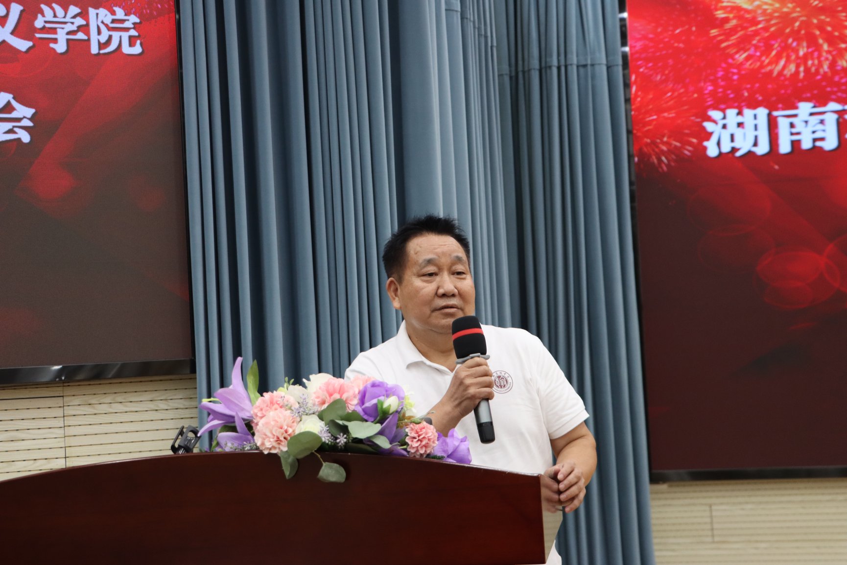 最后,新翰高中副校长潘明作了总结讲话。他说,新翰高中高度重视此次教育实习活动,作为科大的校友,他真心希望科大马院的实习老师们能够秉承浏阳新翰高级中学“特别能吃苦、特别讲奉献、特别肯钻研、特别善协作、特别负责任、特别讲科学”的精神,早日完成由实习生向教师身份的转变,真正适应三尺讲台。