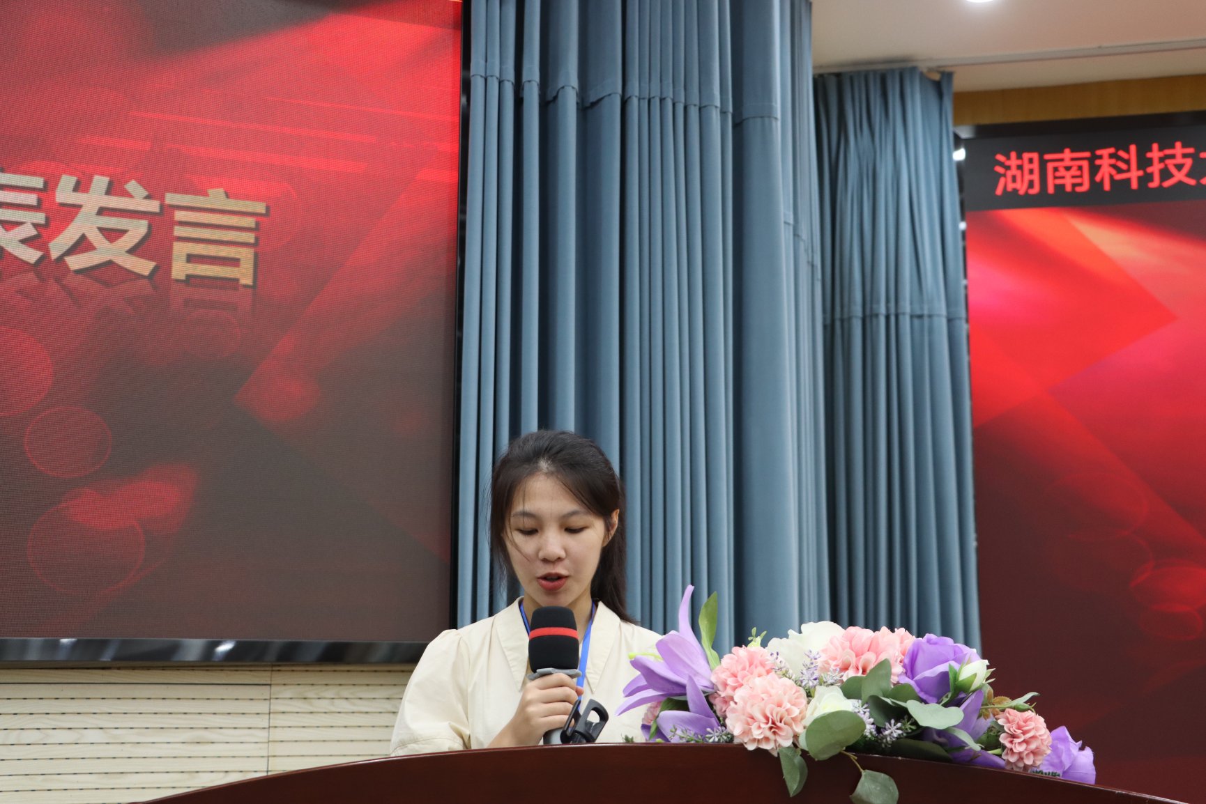 作为实习老师代表,谭诗琳在发言中表示,她对浏阳新瀚高级中学的实习工作的安排表示由衷的感谢,表示将以习近平总书记要求的“教师要成为大先生,做学生为学、为事、为人的示范,促进学生成长为全面发展的人”为目标,修好师德规范,锻炼过硬本领,坚守教育初心,珍惜各种学习机会,不断打磨学习,努力成长为新时代合格的人民教师。