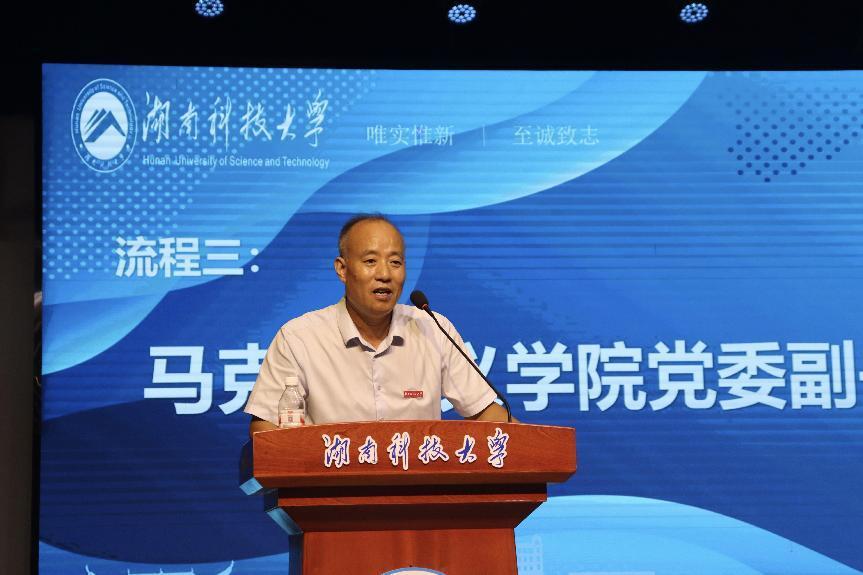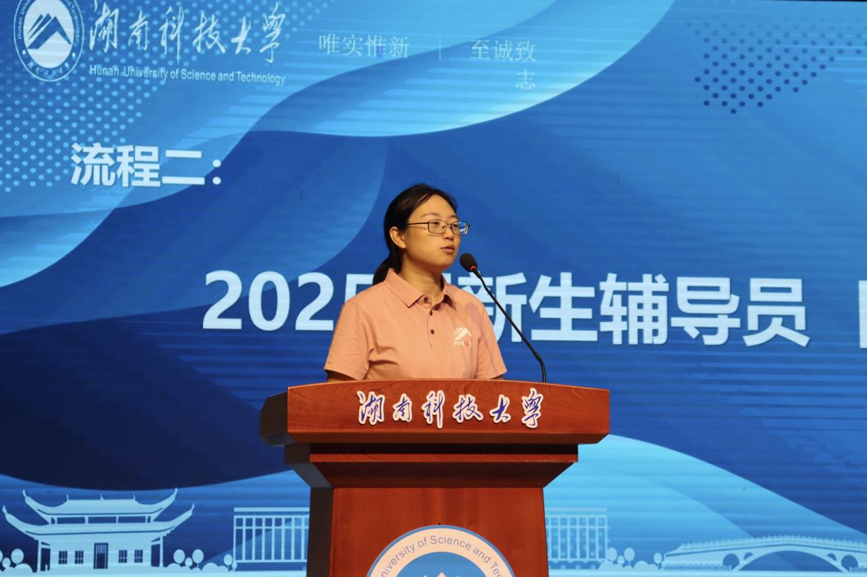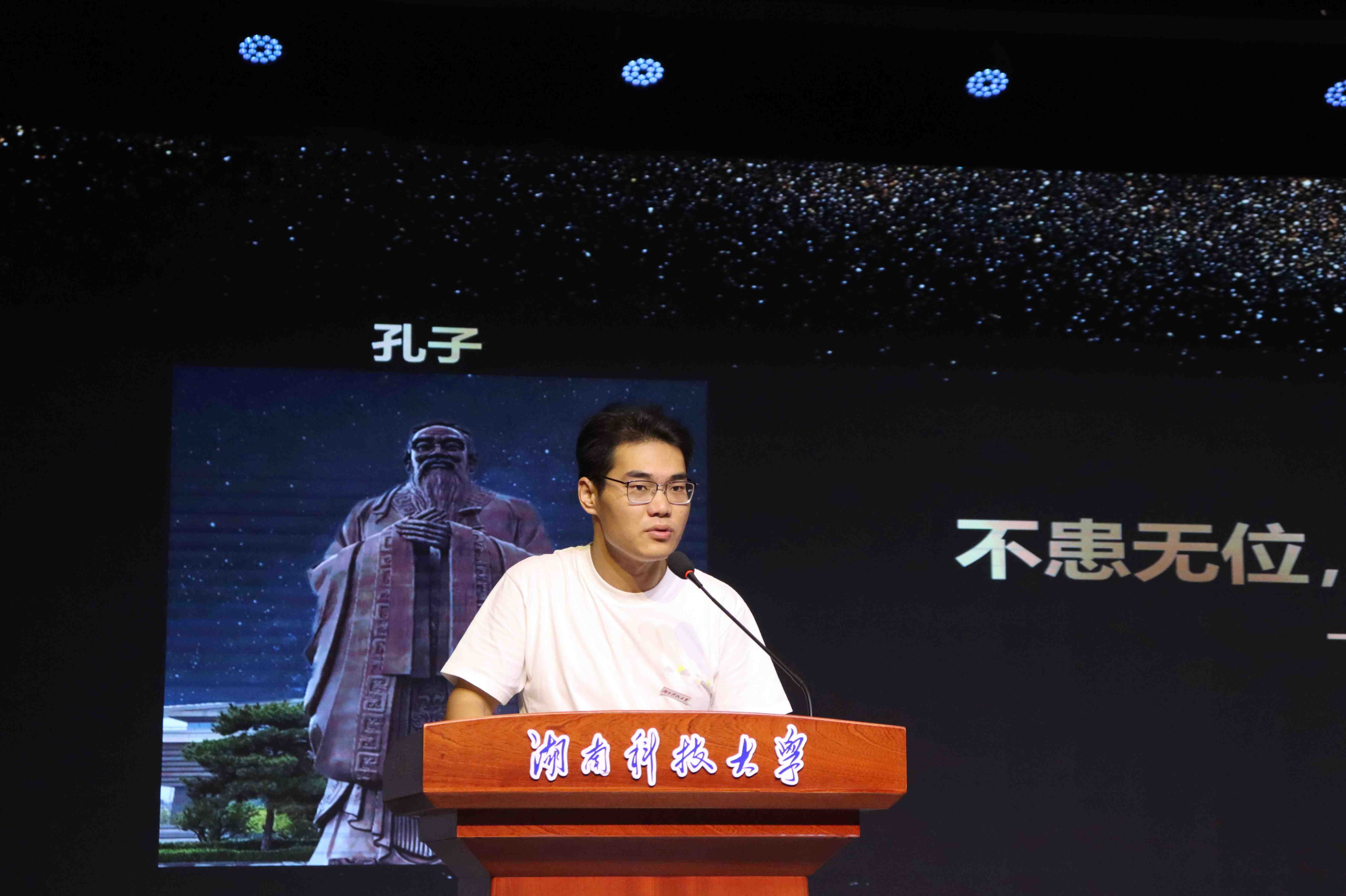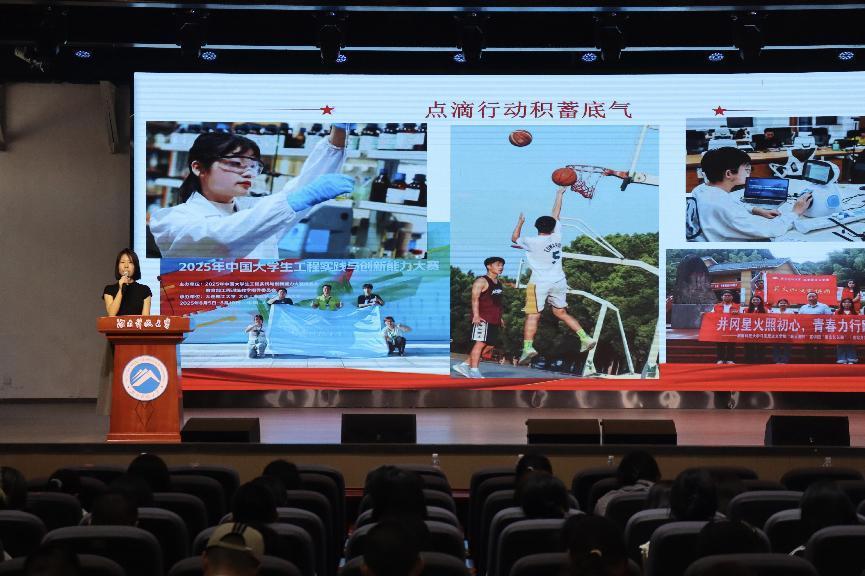 阳继樱就开学准备、军训安排及安全卫生问题作出说明,结合典型案例强调注意事项,引导新生明辨是非、友好相处。“薪火湘传”宣讲团成员则结合自身经历,围绕理想信念与青春奋斗主题分享经验,为新生提供学习生活建议。