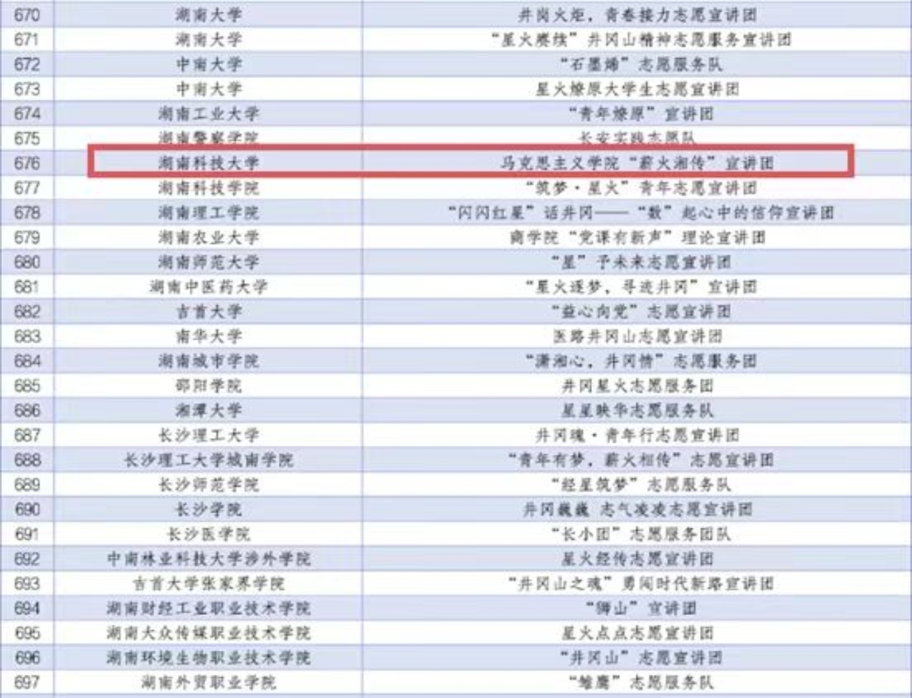 ▲2024年全国大学生井冈山精神志愿宣讲团入选团队名单(截图)