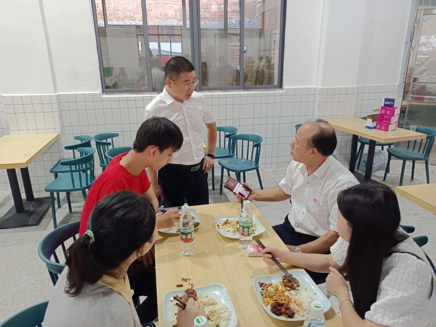 “饭菜是否可口”“你是北方的同学,吃得习惯南方的菜不?”“同学们要多吃点”在用餐过程中,学院领导和老师时不时的询问新生对用餐的感受,与新生进行深入交流,认真倾听他们对食堂饭菜的意见建议,了解他们的住宿、生活情况。同时,还勉励新生们要“既来之,则安之”,尽快适应研究生生活,有问题随时可以找学院老师。