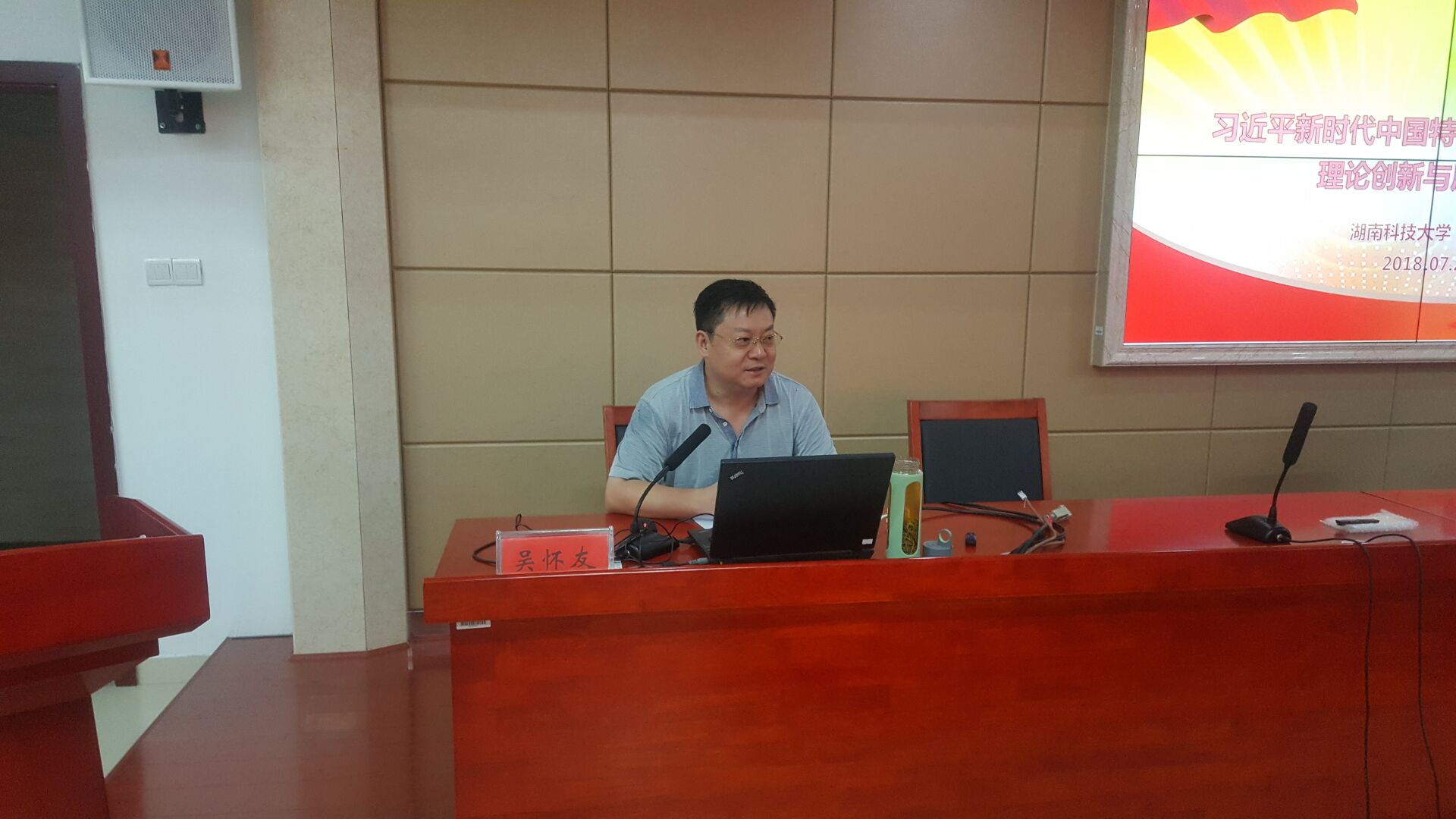 7月28日上午,我院院长吴怀友教授为2018年湖南省“习近平新时代中国特色社会主义思想研读”暑期学校作第八次学术报告,报告主题为“习近平新时代中国特色社会主义思想的理论创新与历史贡献”。会议由我院党委书记廖和平教授主持。