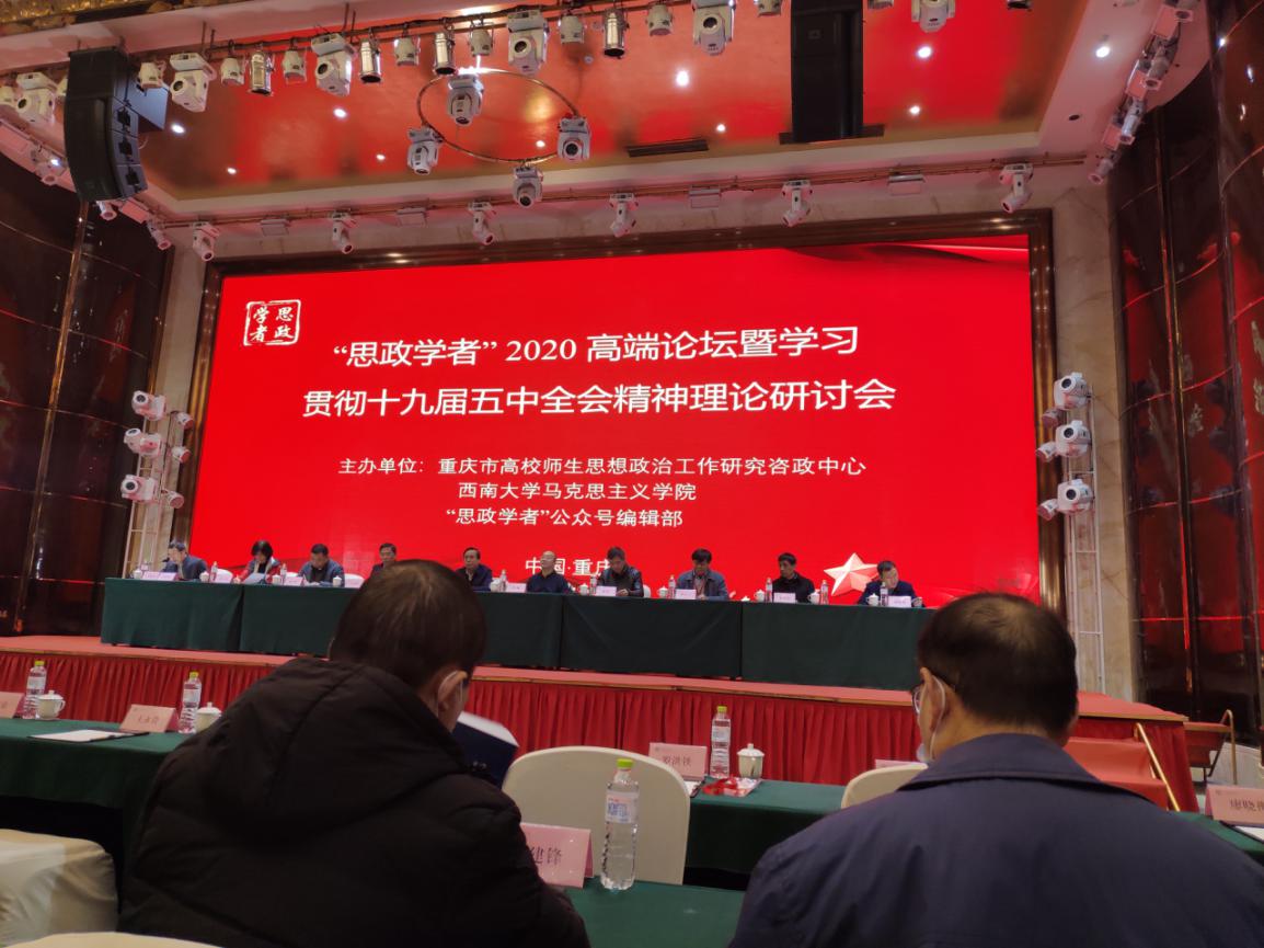 2020年12月18-20日,由重庆市高校师生思想政治工作研究咨政中心、西南大学永利yl23411、“思政学者”公众号编辑部联合举办的“‘思政学者’2020高端论坛暨学习贯彻十九届五中全会精神理论研讨会”在重庆召开,并同步进行了网络直播。此次论坛以学习贯彻十九届五中全会精神为主线,围绕“思想政治教育与开启全面建设社会主义现代化国家新征程”这一主题展开研讨。北京师范大学、武汉大学、南京师范大学、四川大学、西南大学、兰州大学、湖南科技大学等国内70多所高校130余名专家学者参加了此次论坛,网络直播在线观看人数达2.3万人次。