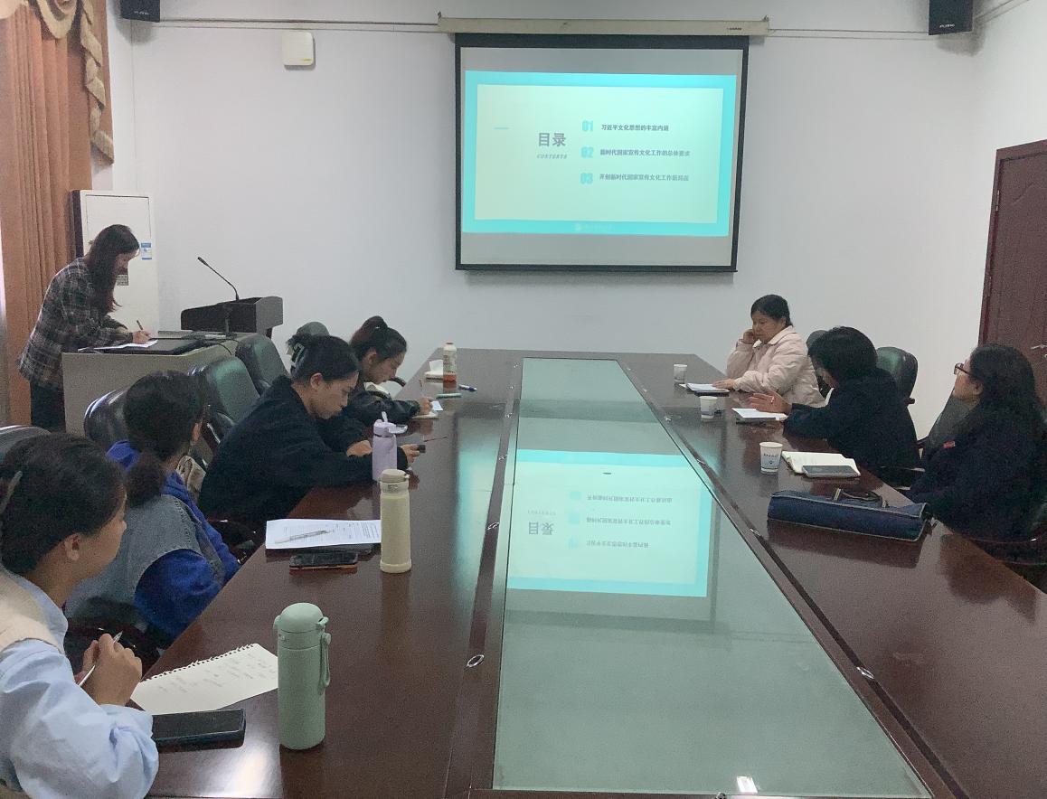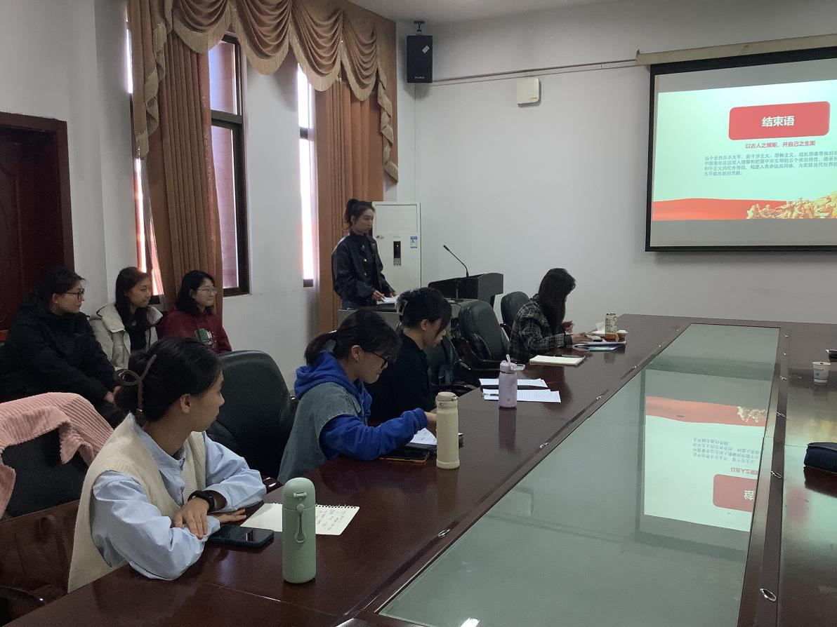 本次报告会共有五名同学进行汇报。肖婷同学从“两个结合”的历史脉络、为什么要进行“第二个结合”和深刻理解“两个结合”的重大意义这三个方面进行了汇报;范奕同学从中华文明和平性的深刻内涵、中华文明和平性的历史渊源、新中国成立以来中华文明和平性的生动实践以及中华文明和平性的价值意蕴—中国式现代化的伦理支撑四个方面展开分析;谌颖同学从习近平文化思想的丰富内涵、新时代国家宣传工作的总体要求以及开创新时代国家宣传文化工作新局面这三个方面展开分析,阐明了习近平文化思想对开创国家宣传思想文化工作的重要性;朱奇英同学以“文化自信的生成逻辑和实践路径”为题,论述了对文化自信的认识过程、文化自信的生成逻辑以及坚定文化自信的实践路径,并分享了自己对坚定文化自信的心得;张朝宇同学从习近平文化思想的形成逻辑和加强国际文化传播能力建设分享了自己对于习近平文化思想的看法。