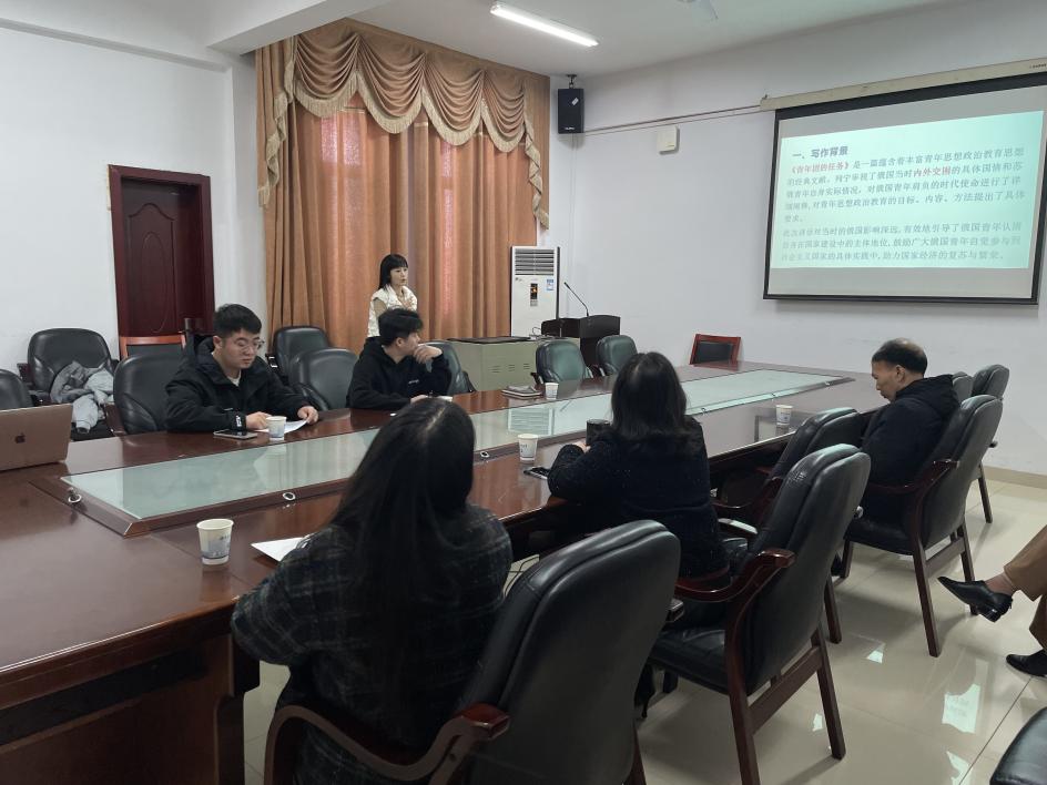 报告会上,23级博士研究生吴雅婷、廖华、娄文浩、聂兴旺、盘林、江娴六位同学交流分享了自己的读书体会。吴雅婷同学重点介绍了《青年团的任务》的主要内容,提出新时代推动青年全面发展,要以培育时代新人为目标、以涵养社会主义道德为重要内容、以融入日常生活为重要途径。廖华同学对马克思的《政治经济学批判〈序言〉》作了分享,深刻分析了马克思研究政治经济学的动因和过程,以及《序言》中阐述的历史唯物主义基本原理。娄文浩同学分享了自己研读列宁的《论我国革命》的体会,着重论述了三种革命理论的演变和逻辑关系。聂兴旺同学基于列宁“最后的书信与文章”进行读书汇报,主要论述了列宁晚年关于社会主义文化建设的理论思考及其历史影响和当代启示。盘林同学讲述了研读《改造我们的学习》的深切体会,重点阐释《改造我们的学习》的创作背景、基本内容、话语风格及当代启示。江娴同学对毛泽东同志处理人民内部矛盾的基本方针和具体方法的理论构思进行了全景式展现,阐述了《关于正确处理人民内部矛盾的问题》中内含的思想政治教育价值意蕴。