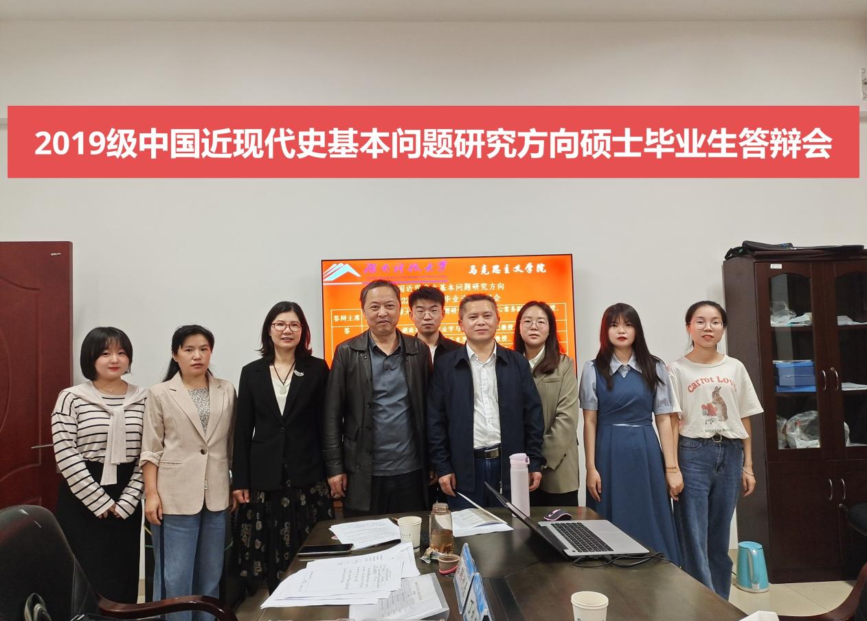 2022年5月21日上午,2019级中国近现代史基本问题研究方向硕士生论文答辩在立言楼A119举行。湘潭大学毛泽东思想研究协同创新中心常务副主任黄显中教授担任本次答辩主席,我校徐德刚教授、米华教授、李端祥教授、谢忠教授、杨松菊教授担任答辩委员。中国近现代史基本问题研究方向2020级、2021级硕士研究生旁听此次答辩。